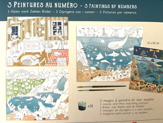 Art Activity Set - PAINT BY NUMBERS, EXPLORATION Scenes, 3 Paintings