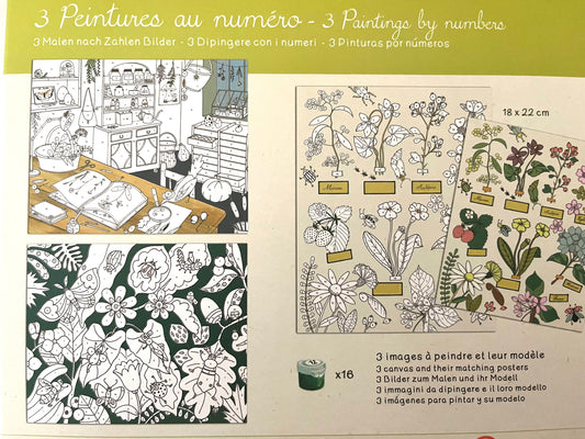 Art Activity Set - PAINT BY NUMBERS, IN THE GARDEN Scenes, 3 Paintings