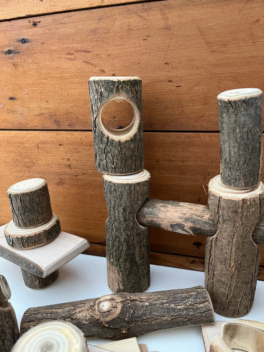 Wooden Toy - BUILDING BLOCKS, Real Bark Edged, 26 pieces!