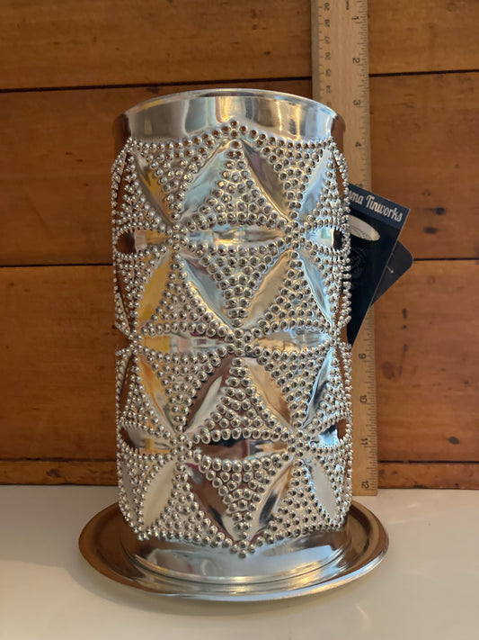 EcoHome - Pierced Tin CIRCLE OF LIFE CANDLE SHADE with Beeswax Votive Candle