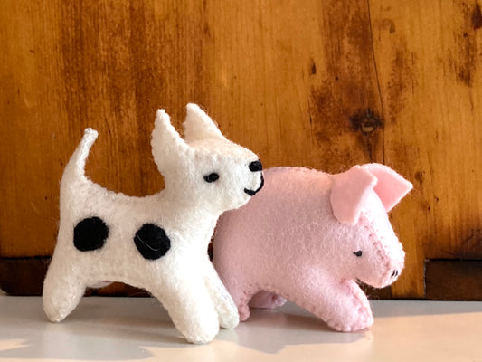 Dollhouse Soft Toy - Wool Felt WHITE DOG, with Black Spots