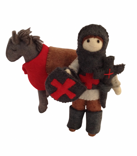 Dollhouse Soft Toy - FELTED KNIGHT IN ARMOUR ON BROWN HORSE