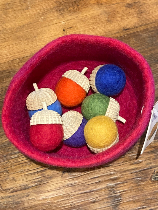 Felted Toys for Baby and Dollhouse Play Set - Wool Felted ACORNS in ALL 7 COLOURS in FELT BOWL