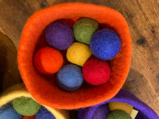 Felted Toys for Baby and Dollhouse Play Set - COLOURED FELT BOWL WITH 7 FELTED BALLS