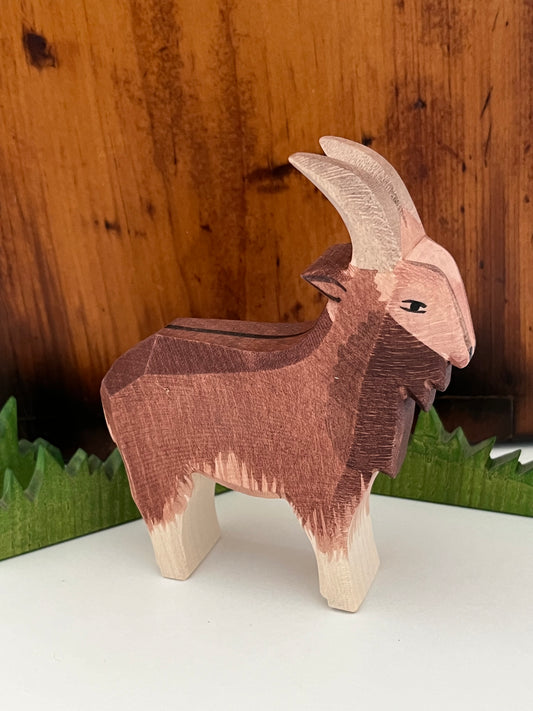 Wooden Dollhouse Play - GOAT, Brown Buck with horns