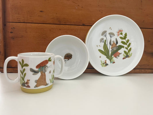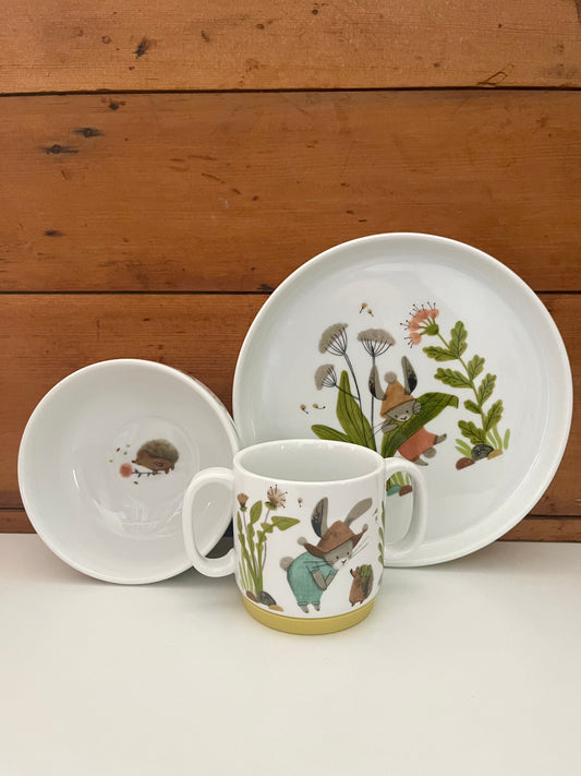 Porcelain DISH SET for Baby - THREE LITTLE RABBITS, 3 pieces