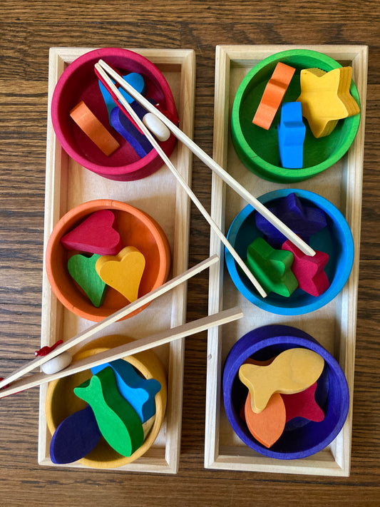 Wooden Toy Game - Grimm's RAINBOW BOWLS SORTING SET, 28 pieces!