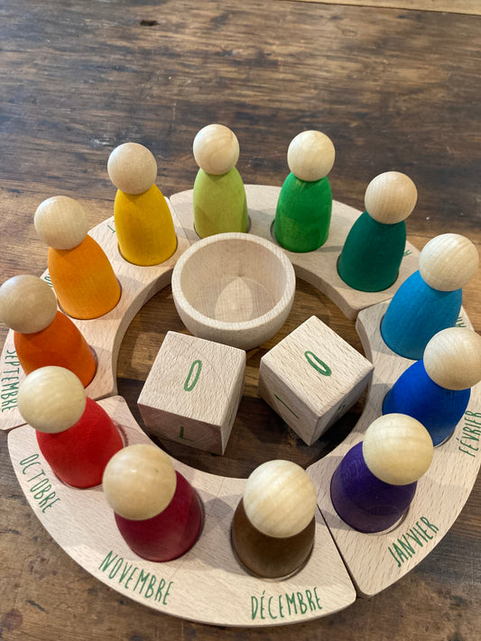 Educational Wooden CIRCULAR CALENDAR by Grapat, in FRENCH