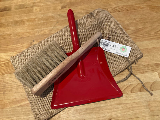 Child's Wood DUST BRUSH and Red Metal DUST PAN