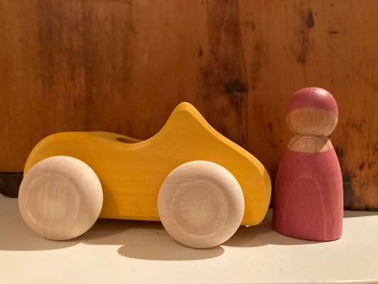 Wooden Toy Car - YELLOW CONVERTIBLE with driver