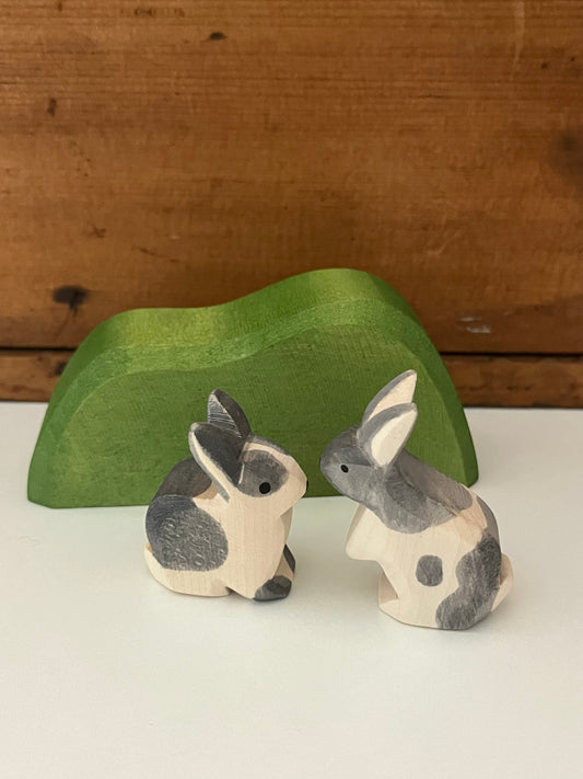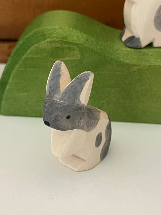 Wooden Dollhouse Play - RABBIT, BLACK & WHITE, small sitting