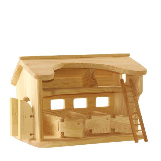 Wooden Dollhouse Play - HORSE STABLE BARN, 3 stalls & Hayloft!