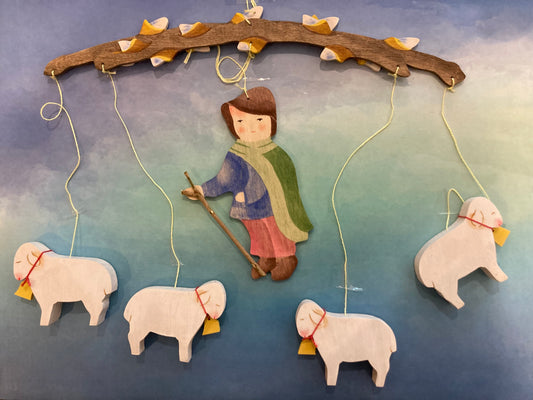 Wooden Mobile for Baby's Room - SHEPHERD BOY AND SHEEP