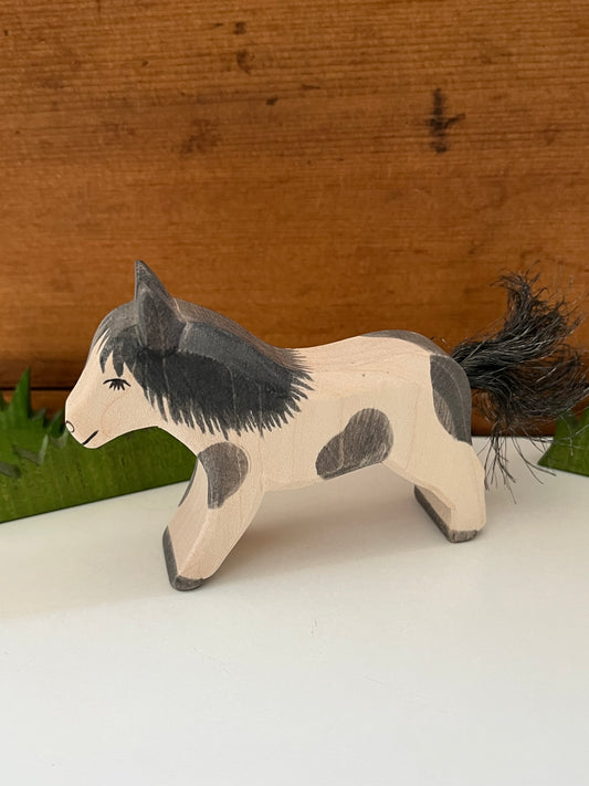 Wooden Dollhouse Play - SHETLAND PONY, Running, Grey & White