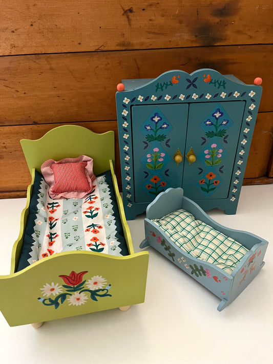 Doll Furniture - Les Minouchkas WOODEN CRADLE, with Mattress