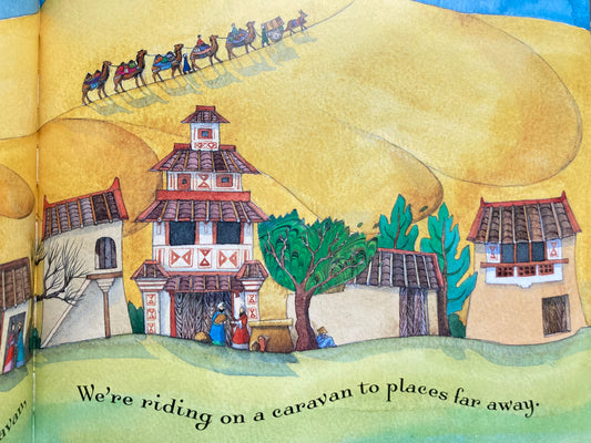 Livre d'images éducatif pour enfants - À cheval sur une caravane