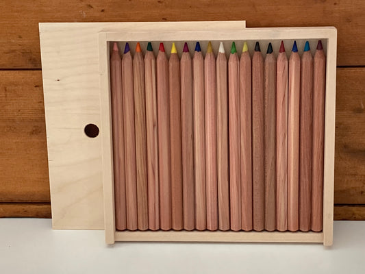 Crayons de couleur - CRAYONS YORIK dans une boîte en bois, 18 couleurs !