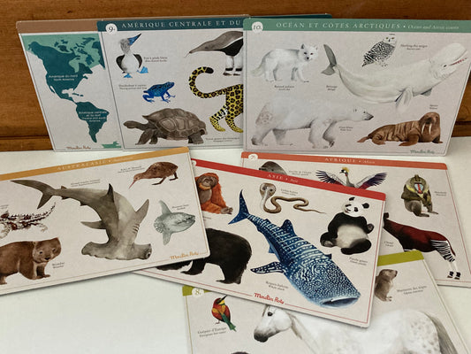 Coffret d'affiches pédagogiques - CARTE DES ANIMAUX DU MONDE, 107 transferts d'animaux !