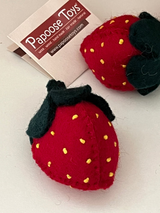 Kitchen Play Food - Wool Felted STRAWBERRY, 3 Strawberries!