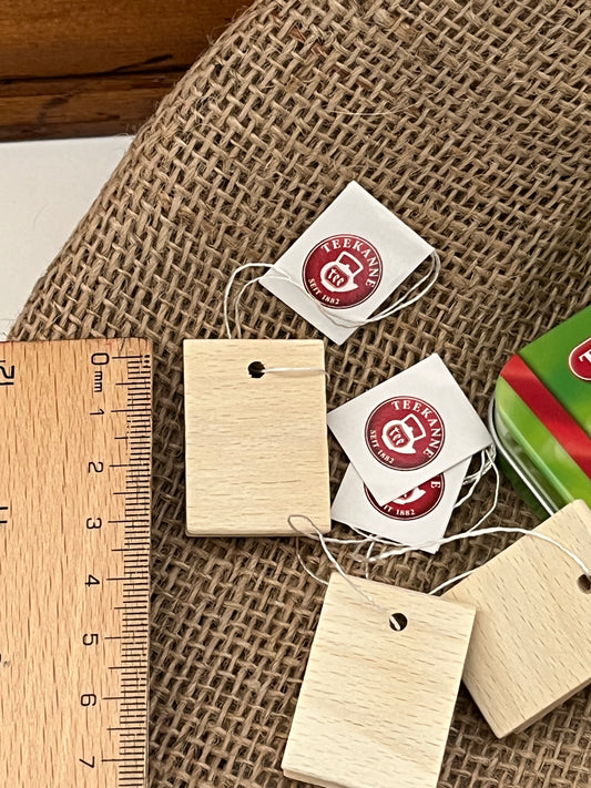 Kitchen Play Food - Wooden TEA BAGS in a Tin, 5 tea bags!