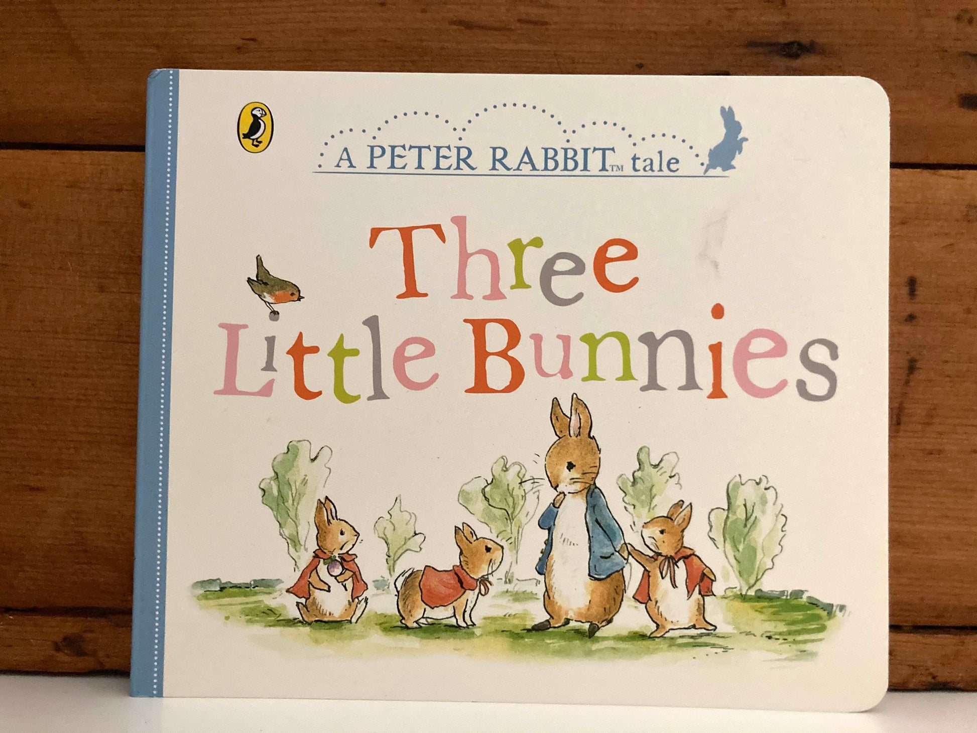 Un conte de Pierre Lapin, TROIS PETITS LAPIN, en format livre cartonné. Le premier livre Pierre Lapin de bébé.