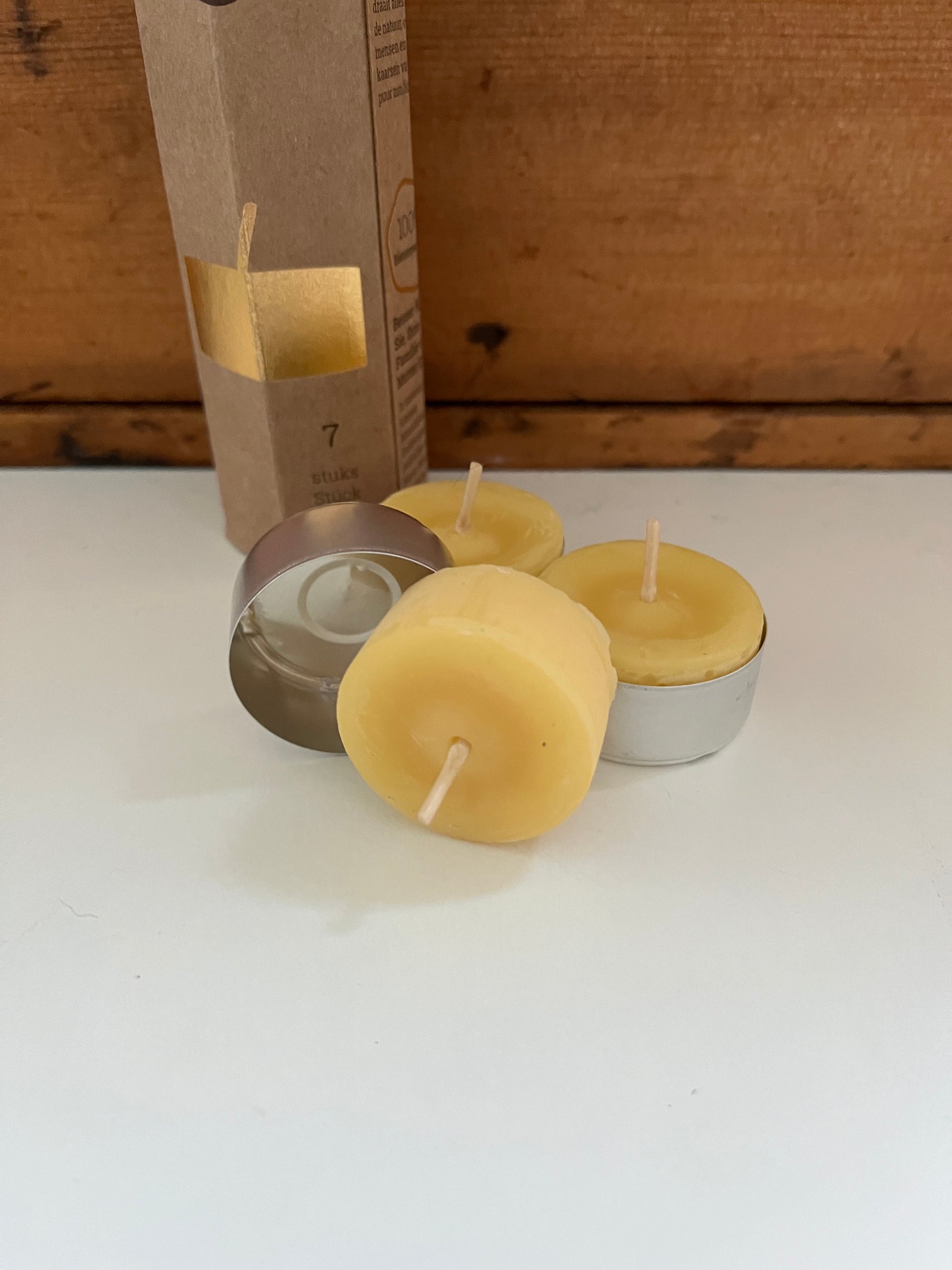 Bougies en cire d'abeille - LUMIÈRES À THÉ (dans des tasses en métal), paquet de 7 !