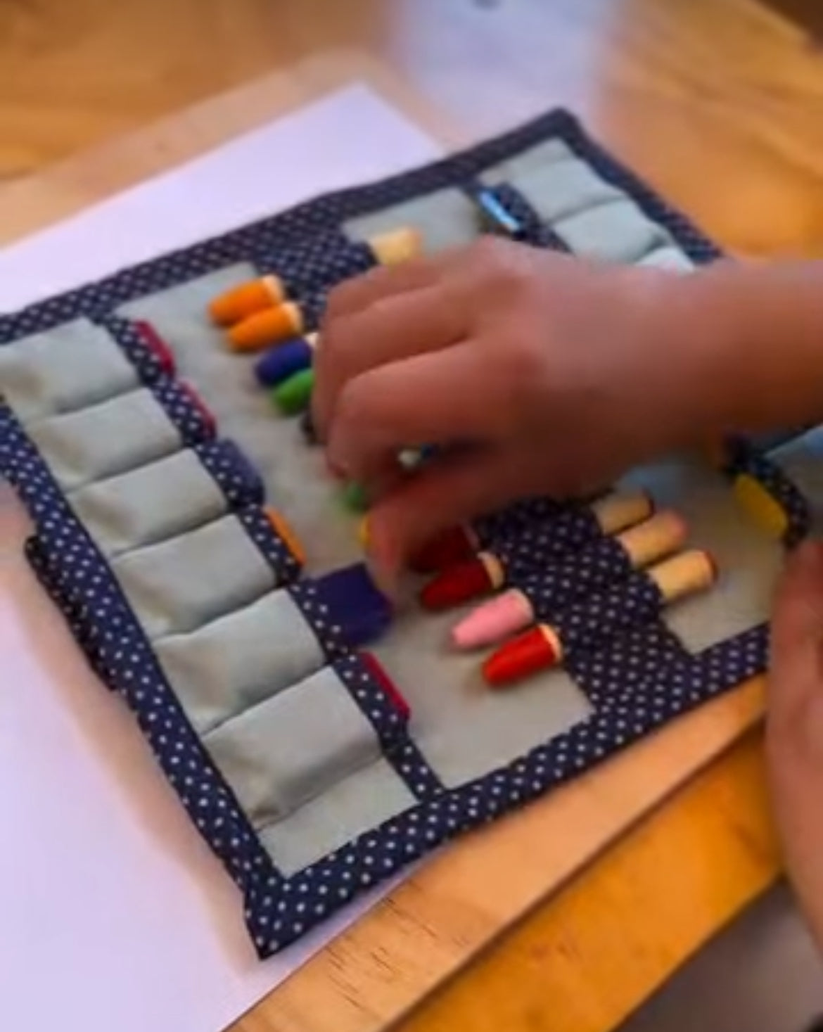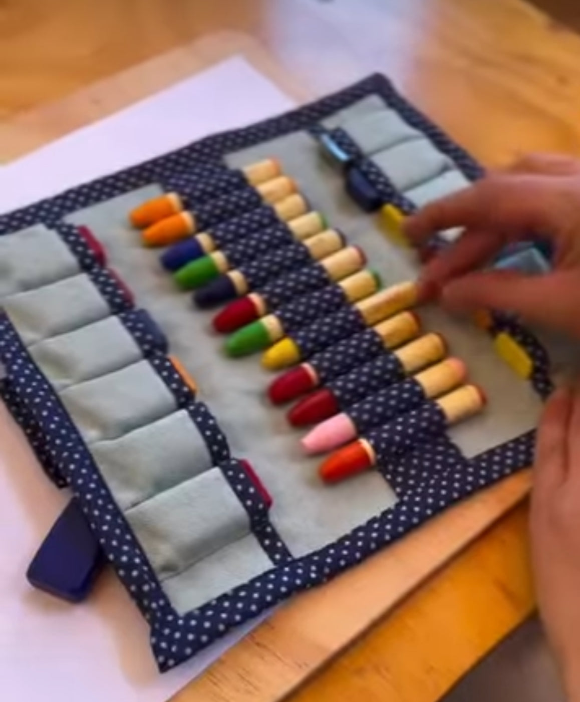 Belle pochette à crayons en coton lourd faite à la main avec 24 crayons de cire d'abeille inclus. C'est véritablement un cadeau qui sera valorisé, et apprécié tout au long d'une enfance de coloriage !