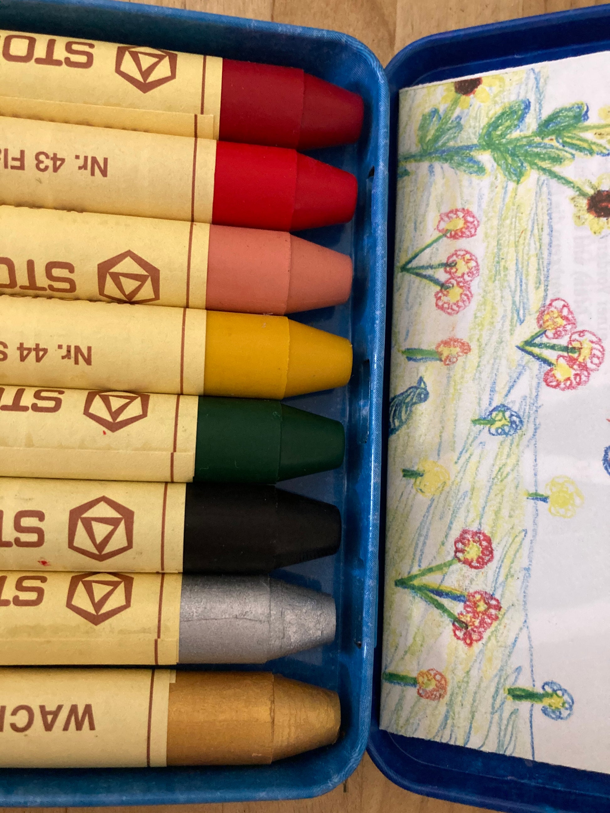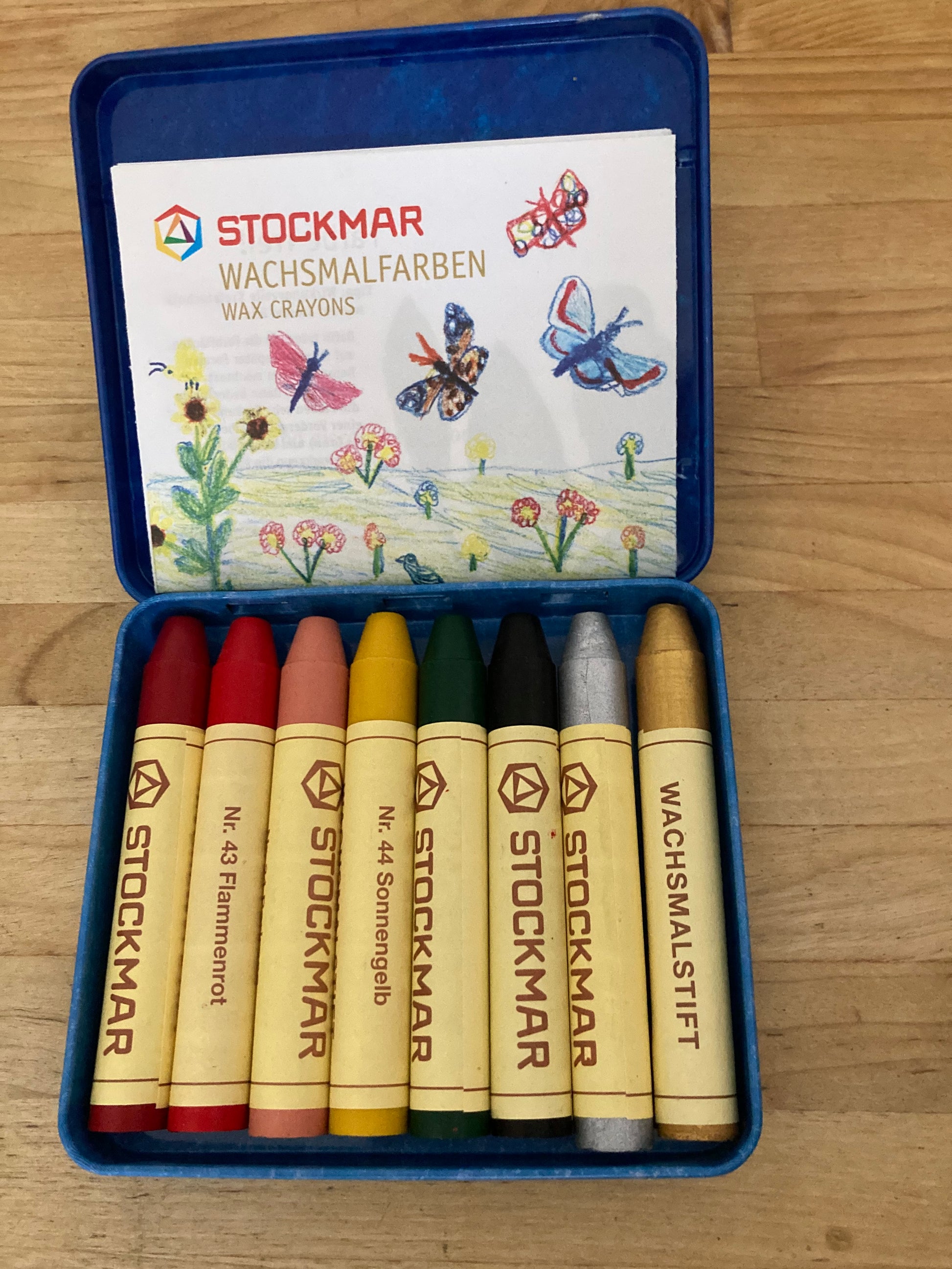 L'ensemble gratuit de 8 crayons de cire d'abeille dans une boîte souvenir, comprenant les très convoitées COULEURS OR ET ARGENT. Ce sont les mêmes crayons de cire d'abeille 100 % pure de haute qualité utilisés par les étudiants des écoles Waldorf du monde entier. Fabriqué en Allemagne par Stockmar.