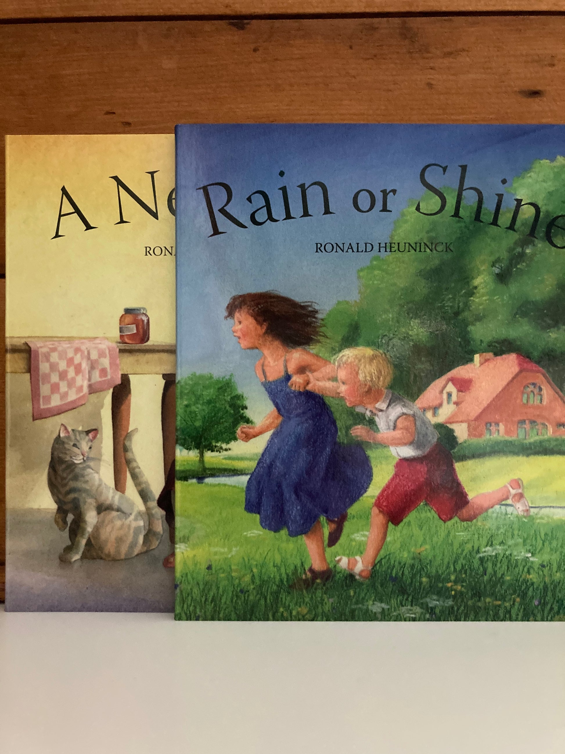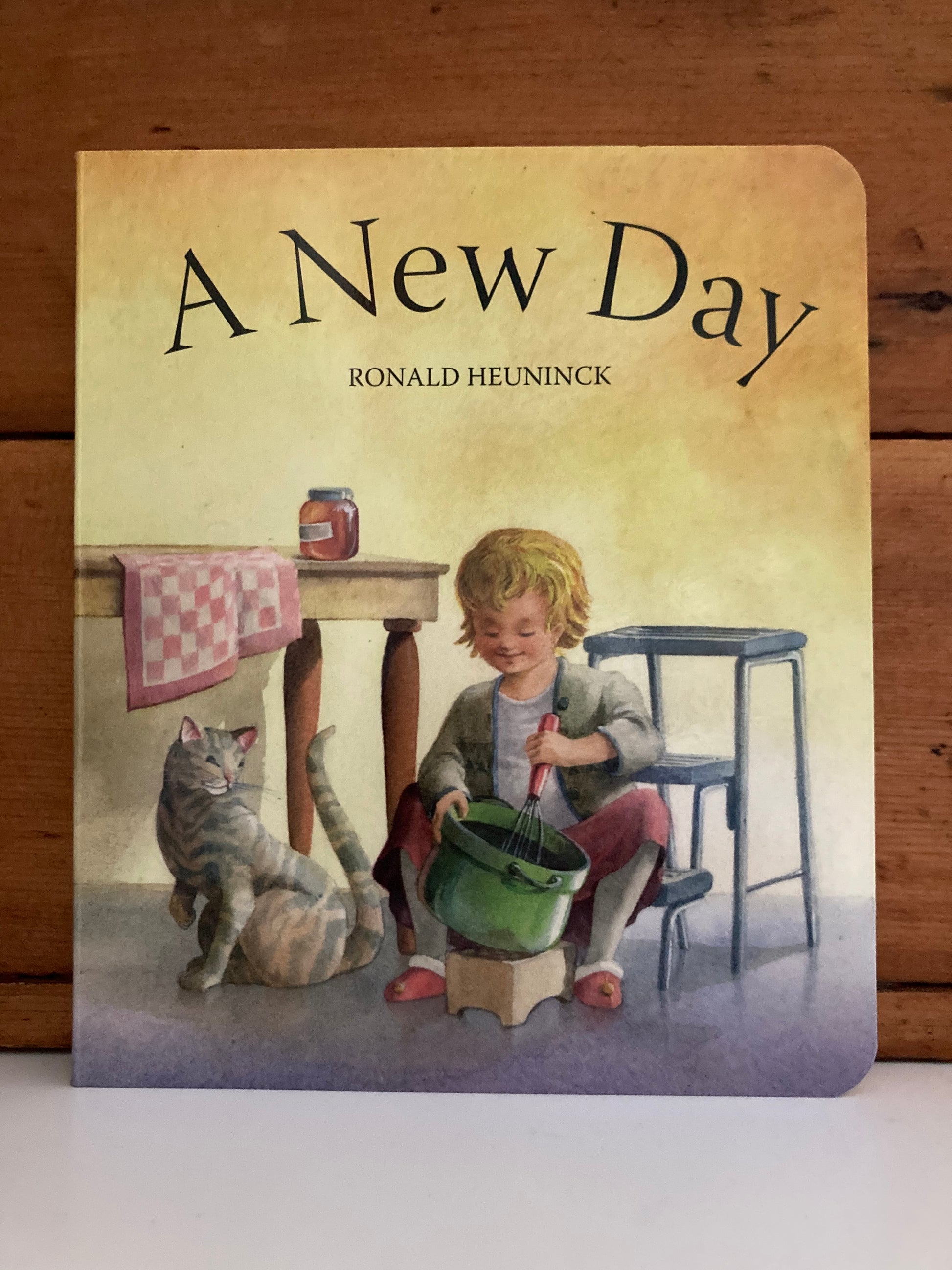 Le livre cartonné A NEW DAY de l'illustrateur Ronald Heuninck et RAIN or SHINE. À la fois sans texte et avec des peintures positivement luminescentes représentant la douceur, la convivialité familiale et les enfants qui jouent. Les enfants adoreront repérer les détails dans chaque belle page.
