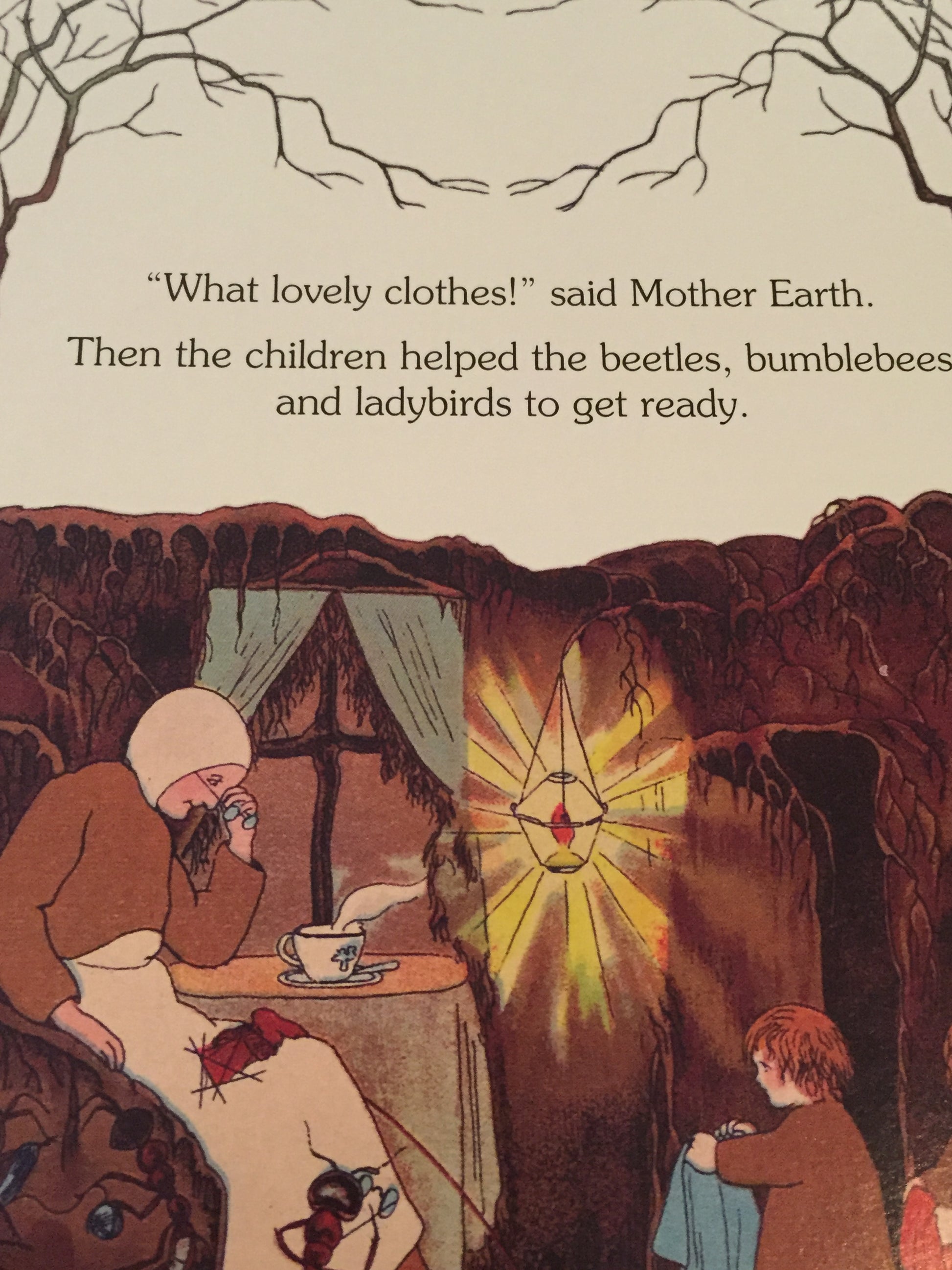 "Les petits enfants Root passent tout l'hiver endormis sous terre. Mais quand le printemps arrive, ils sortent au soleil pour jouer".