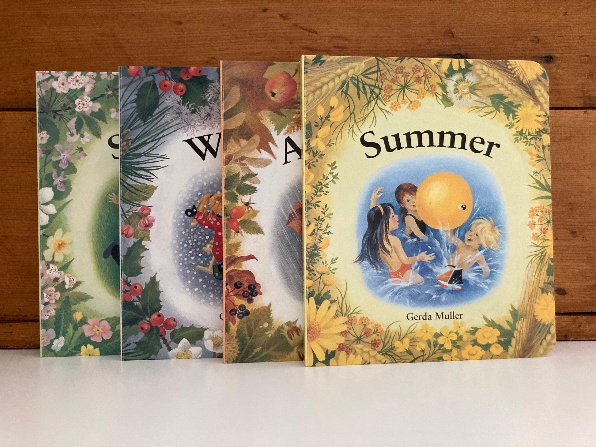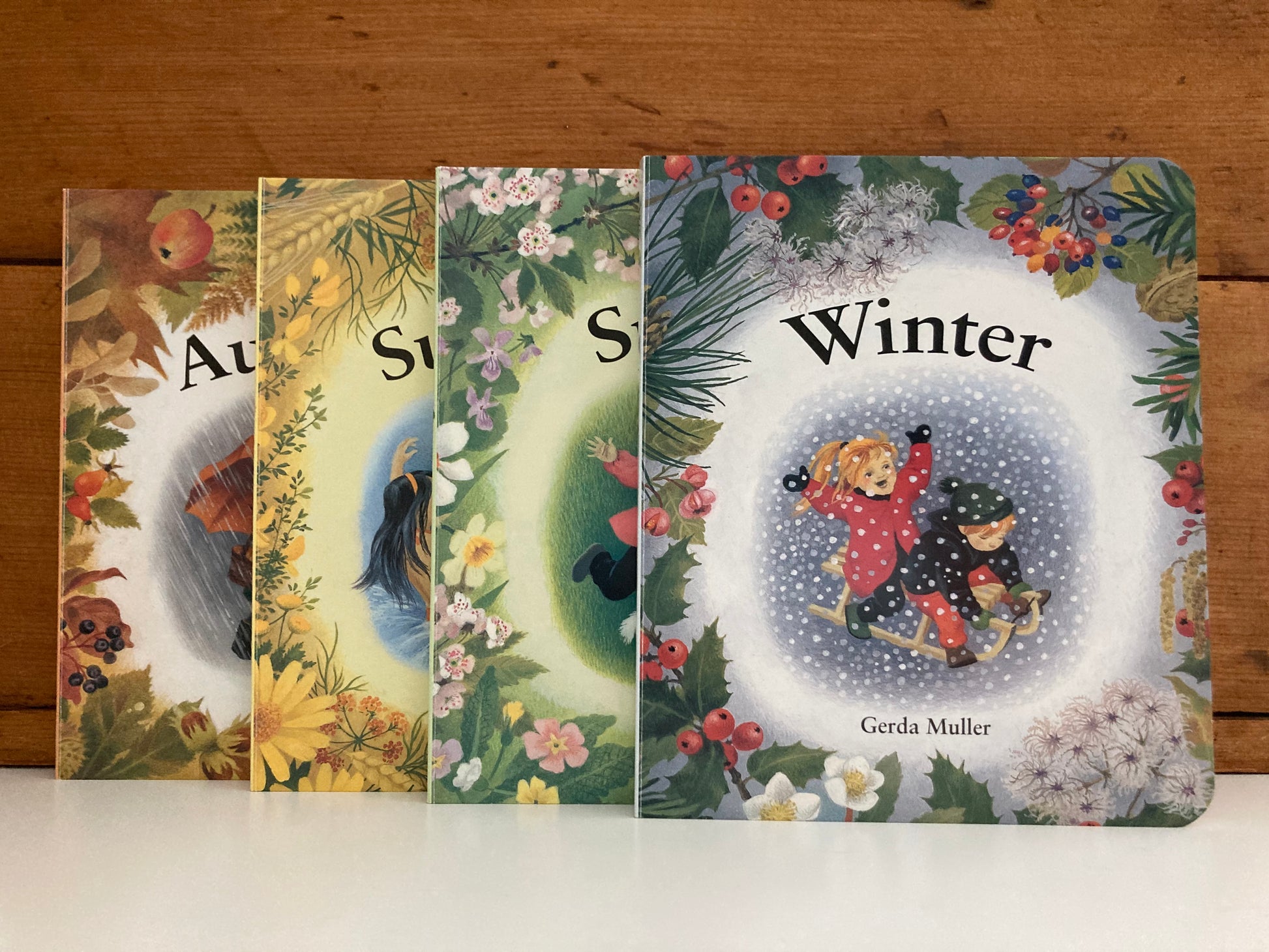 Livres cartonnés pour bébé de l'auteure illustratrice pour enfants bien-aimée Gerda Muller. Illustrations lumineuses, sans texte. Célébrez les saisons. Merci de choisir lors de votre commande l'un des 4 titres, chacun vendu séparément :