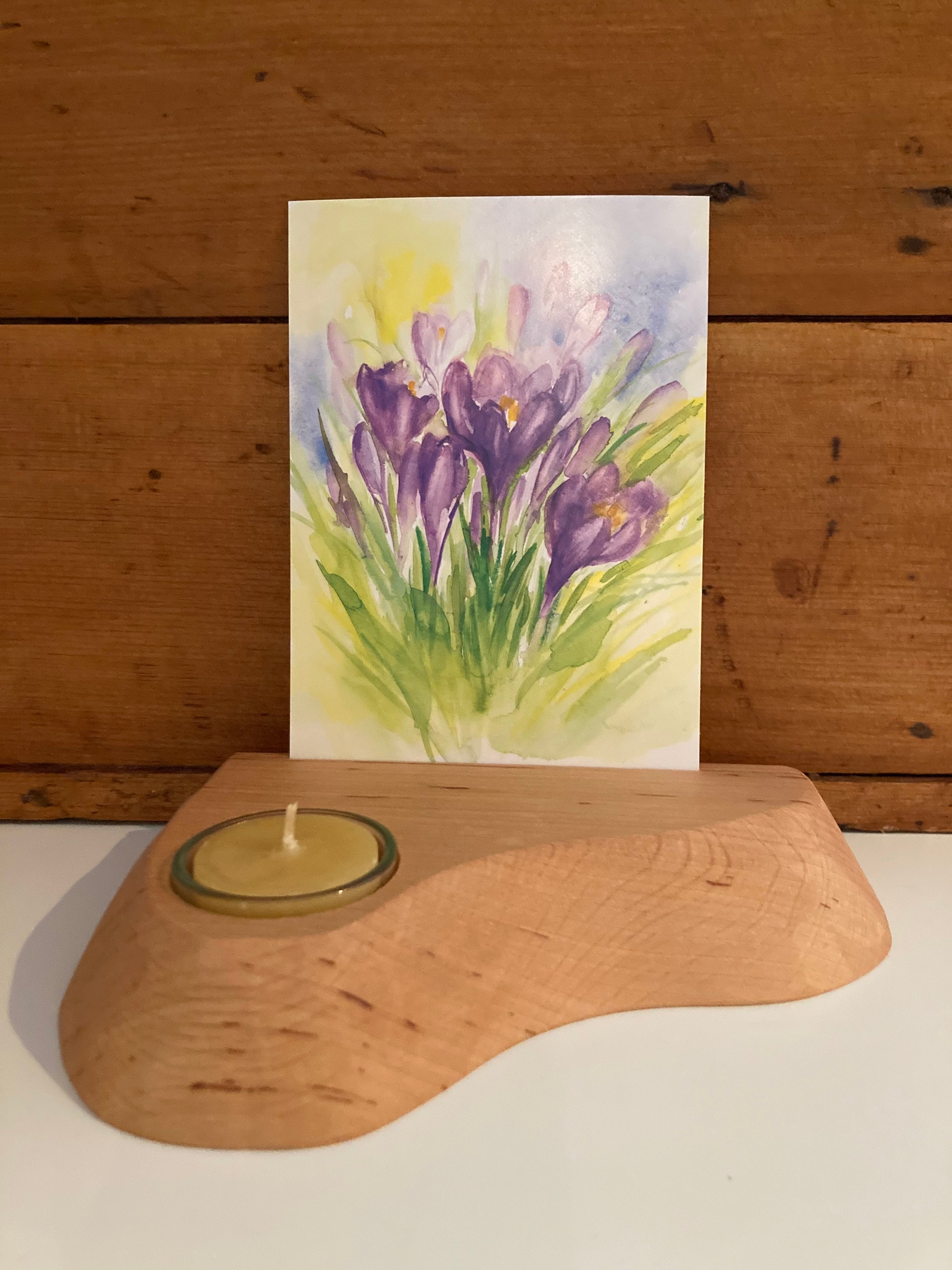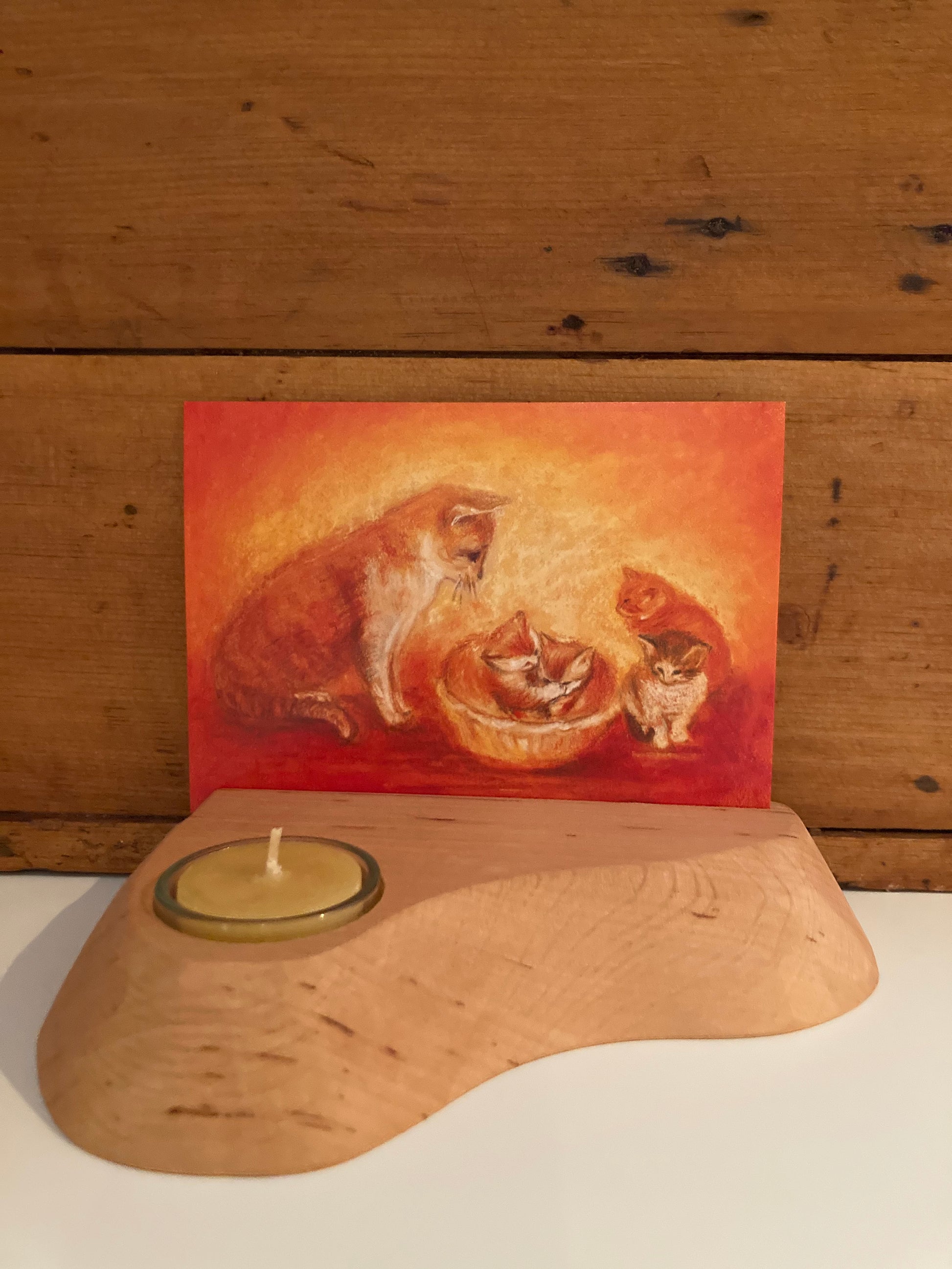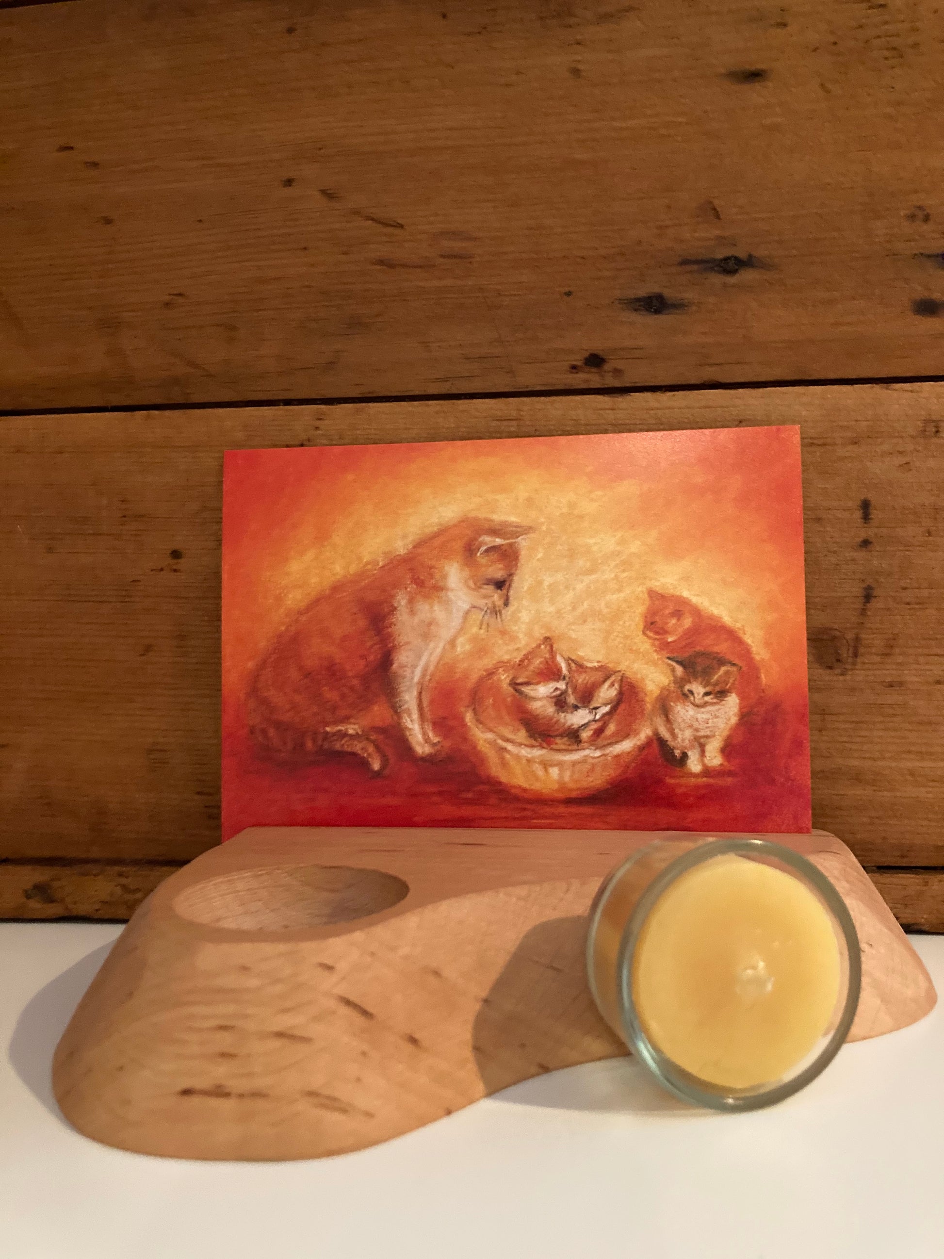 STAND DE CARTES avec bougie chauffe-plat en cire d’abeille
