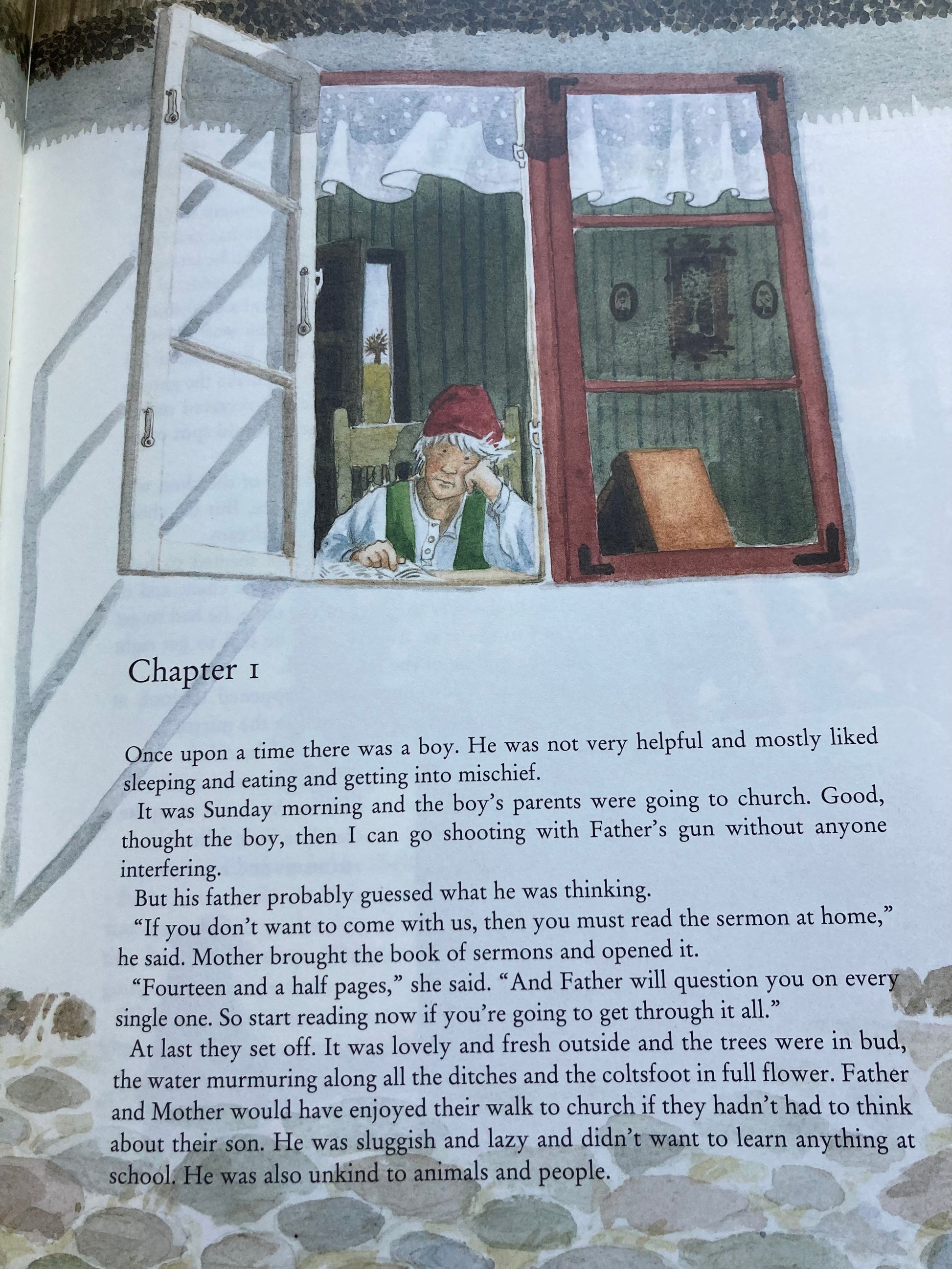 "Un matin, Nils Holgersson se retrouve transformé d'un garçon ordinaire en un petit gnome ! Peut-être qu'il n'aurait pas dû être aussi méchant !"