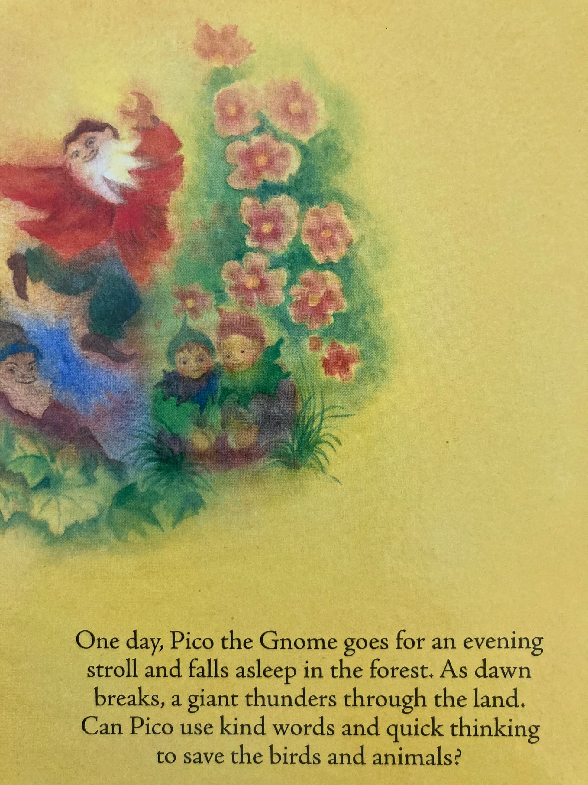 Un jour, Pico le Gnome part en promenade nocturne et s'endort dans la forêt. Alors que l’aube se lève, un géant gronde à travers les terres. Avec une réflexion rapide et des paroles aimables, notre héros sauve les petits animaux et oiseaux effrayés de la forêt. "Quelle journée merveilleuse il a eue !"