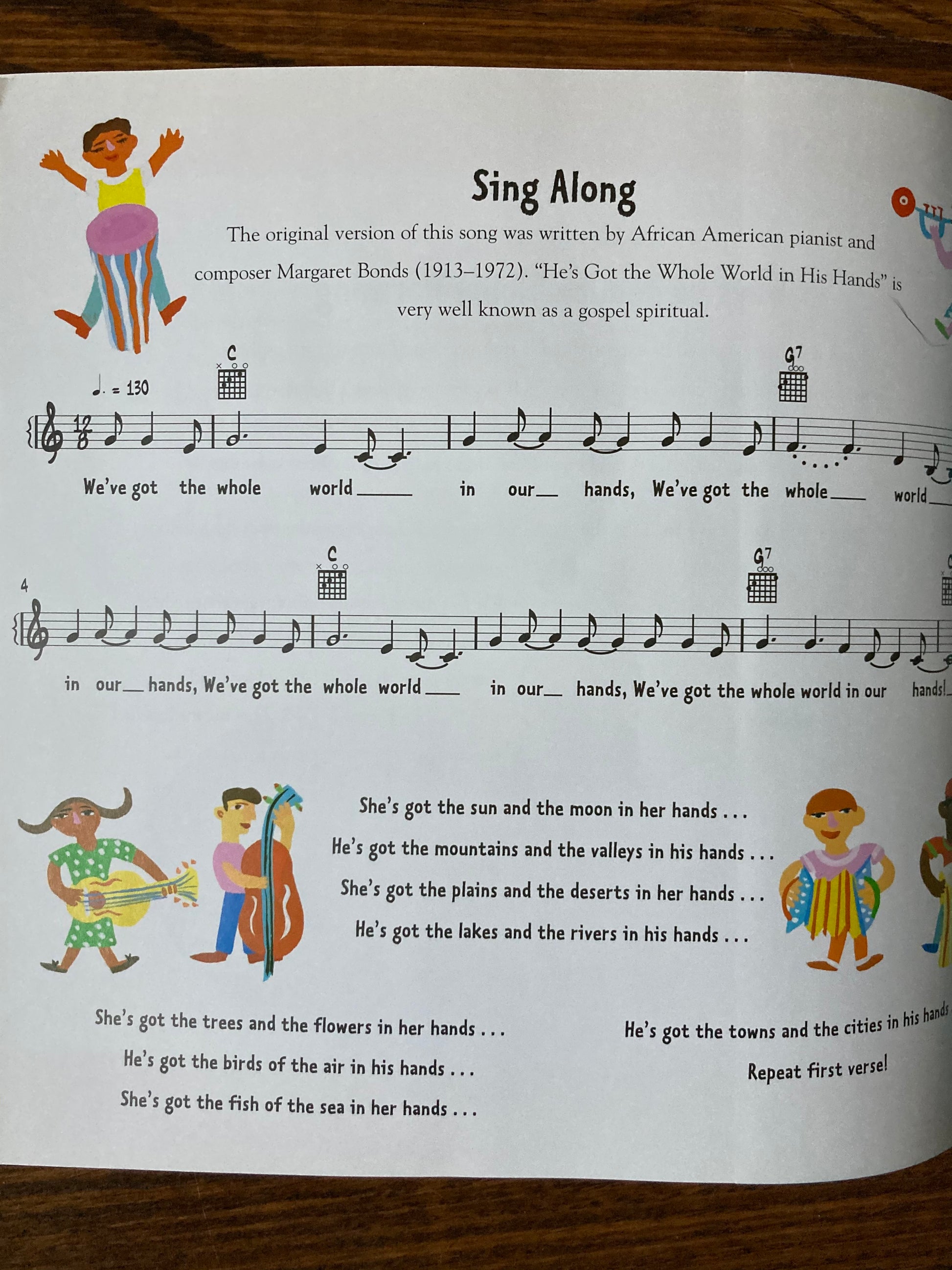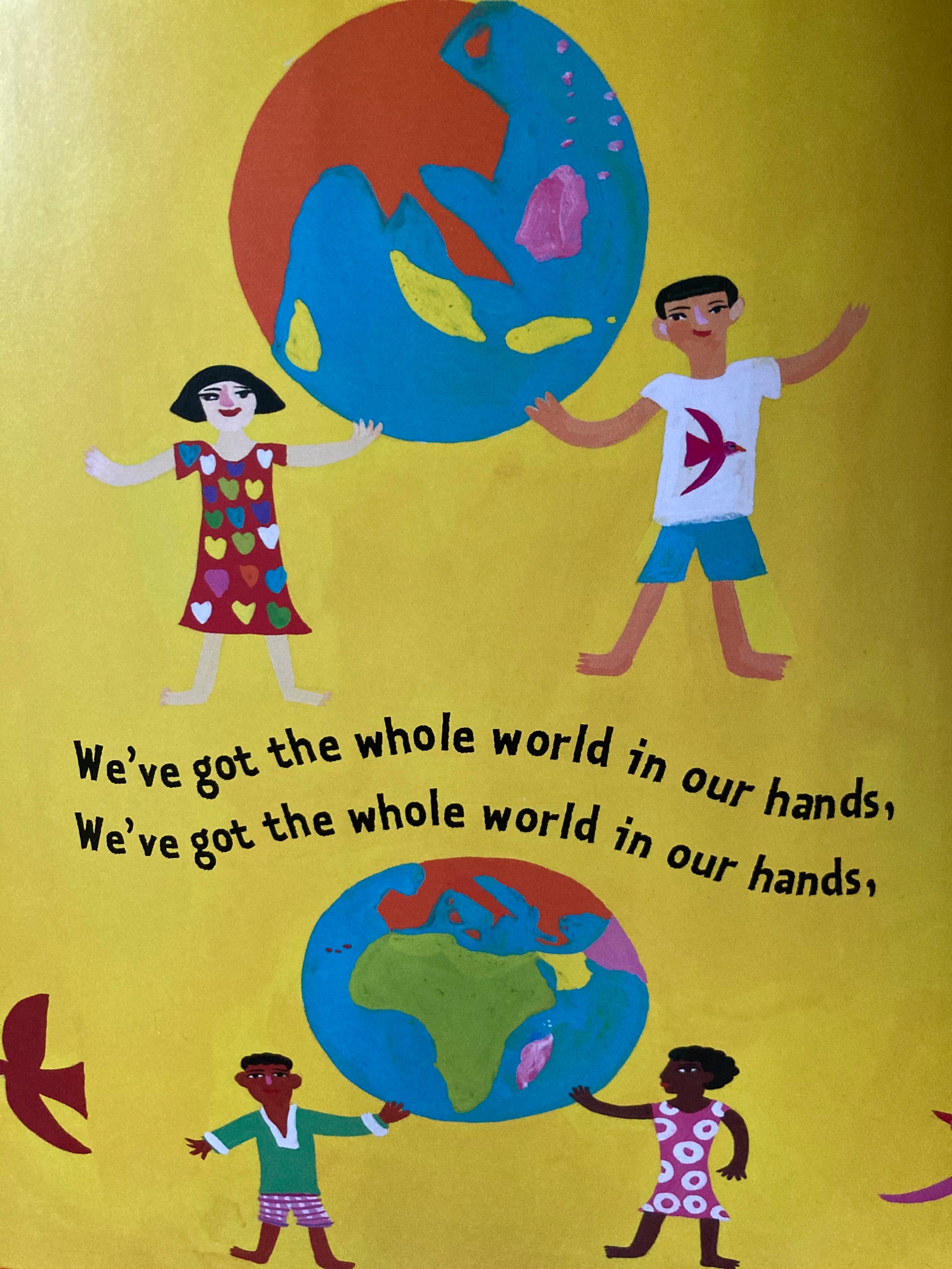Illustre absolument magnifiquement l’une des chansons les plus appréciées ! Nous avons le monde entier entre nos mains, écrit à l'origine comme un évangile spirituel par Margaret Bonds, animé par l'illustrateur Christopher Corr et rendu célèbre par Fred Penner.