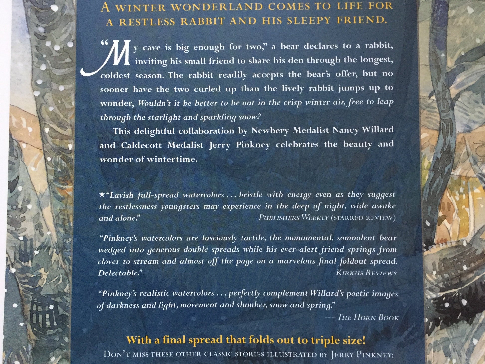 L'artiste médaillé Caldecott Jerry Pinkney donne vie à l'histoire de l'auteure Nancy Wilard, A STARLIT SNOWFALL, avec de somptueuses aquarelles entièrement étalées.