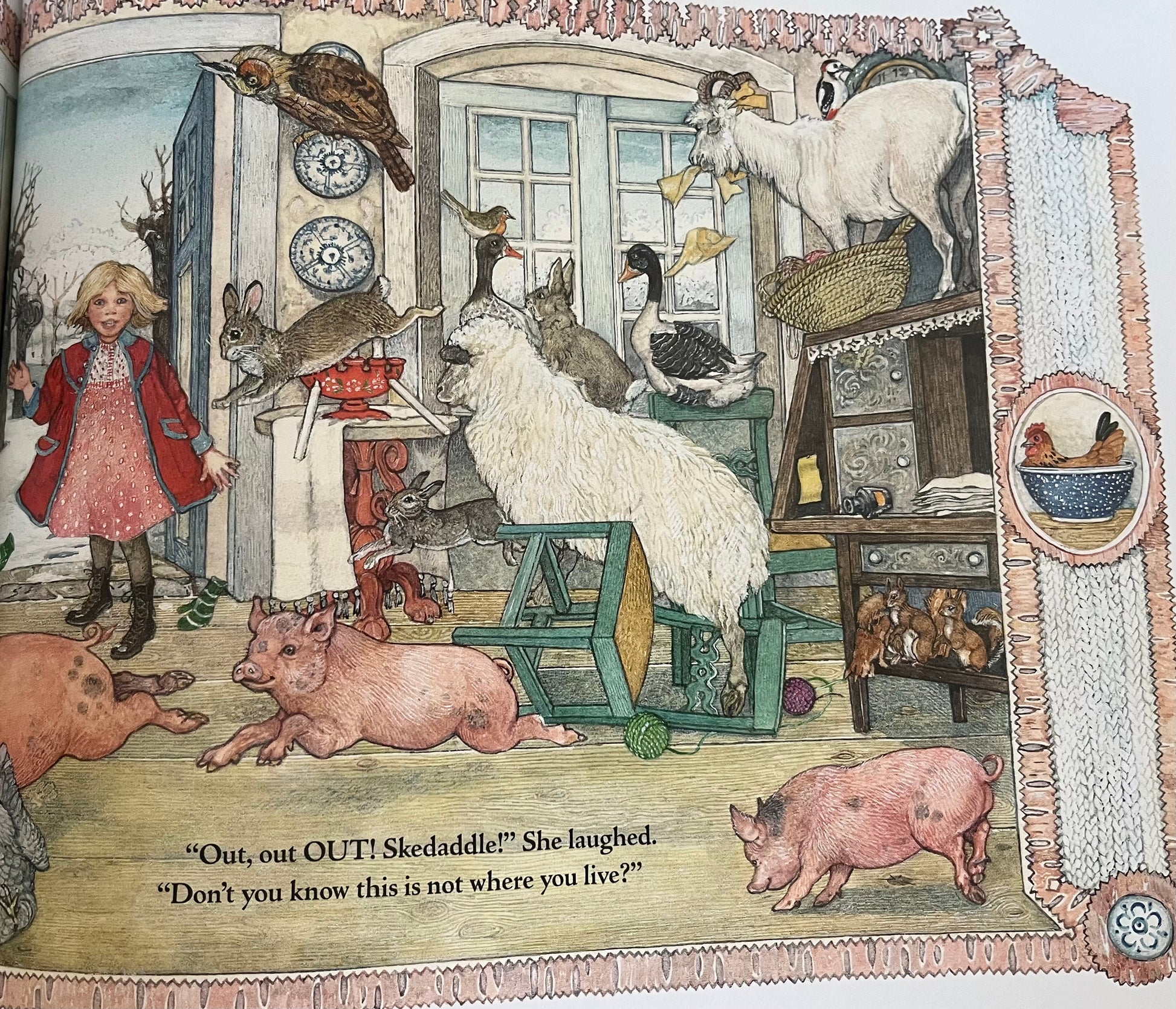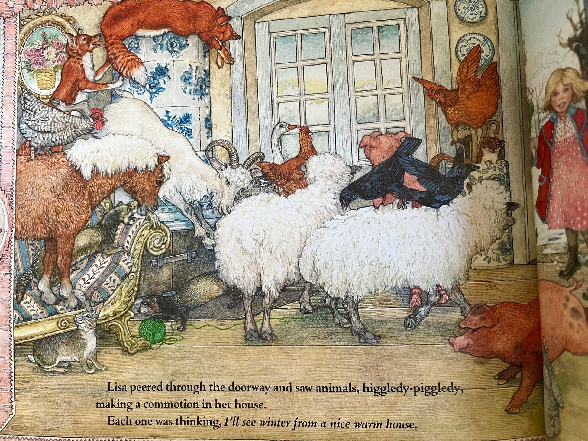 Another illustrated wonder of a picture book by internationally acclaimed illustrator/author Jan Brett. You can spend more time being amazed by the intricate borders of each page, and all the hidden treasures within... than you spend actually reading the words on each page. No child will not love looking for all of Hedgie's little friends, and discovering what fun wintery antics each is up to... hidden in each page!