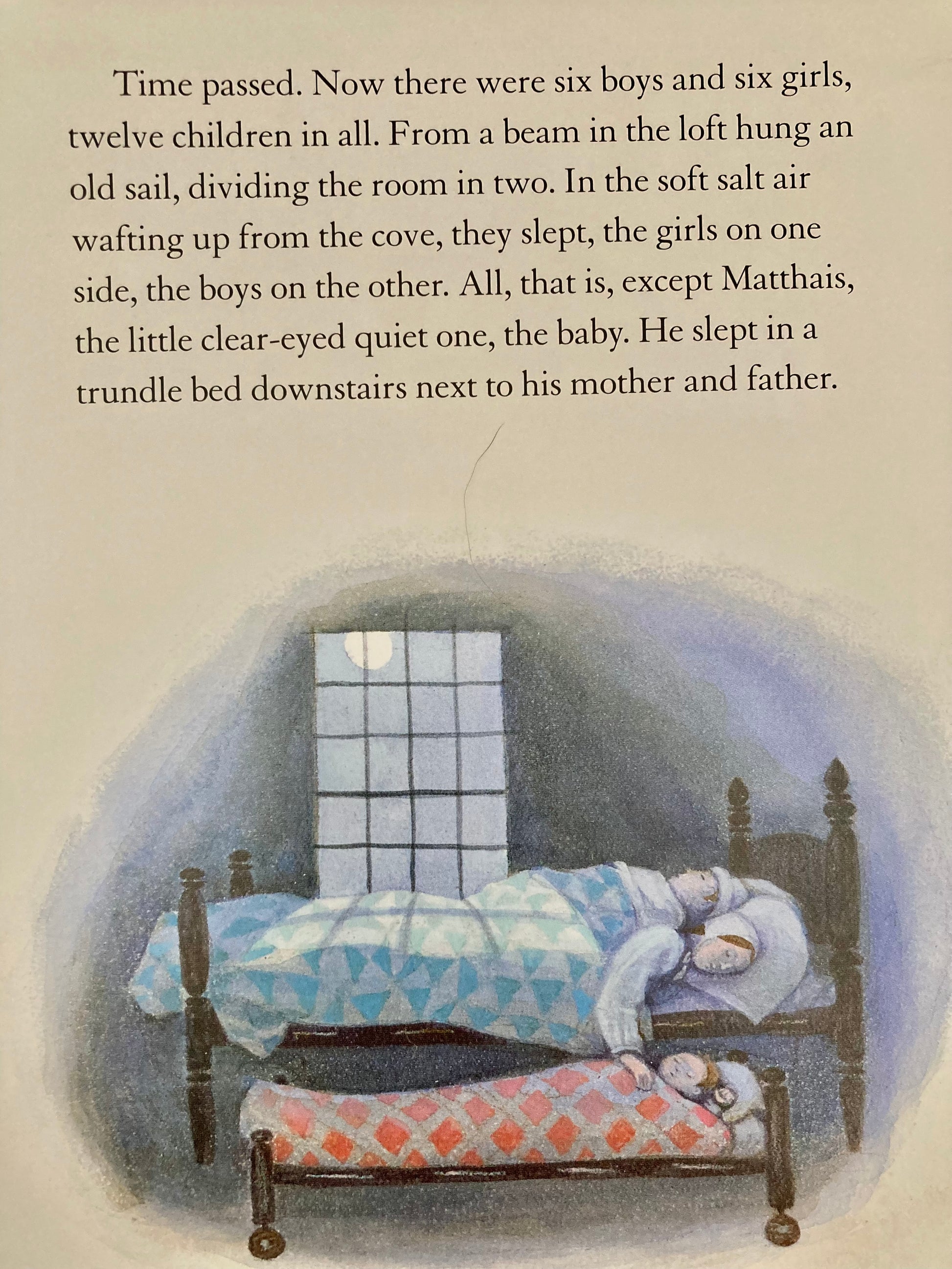 Ses magnifiques illustrations lumineuses à l'aquarelle détaillent parfaitement le monde presque oublié de la famille Tibbett et l'histoire de leur plus jeune fils Matthais, l'Island Boy du titre.