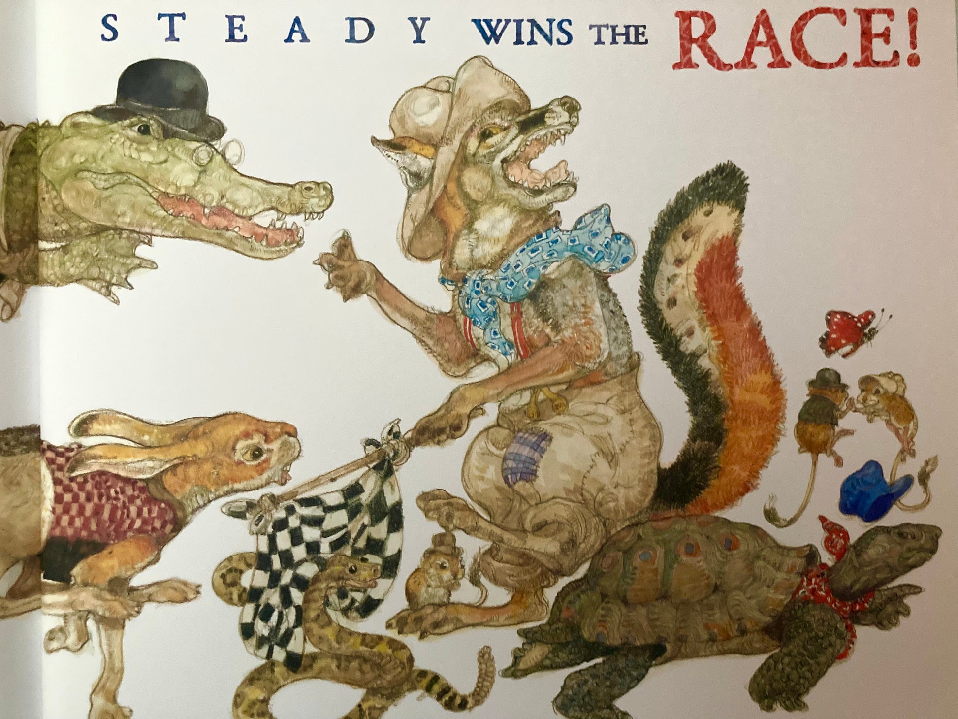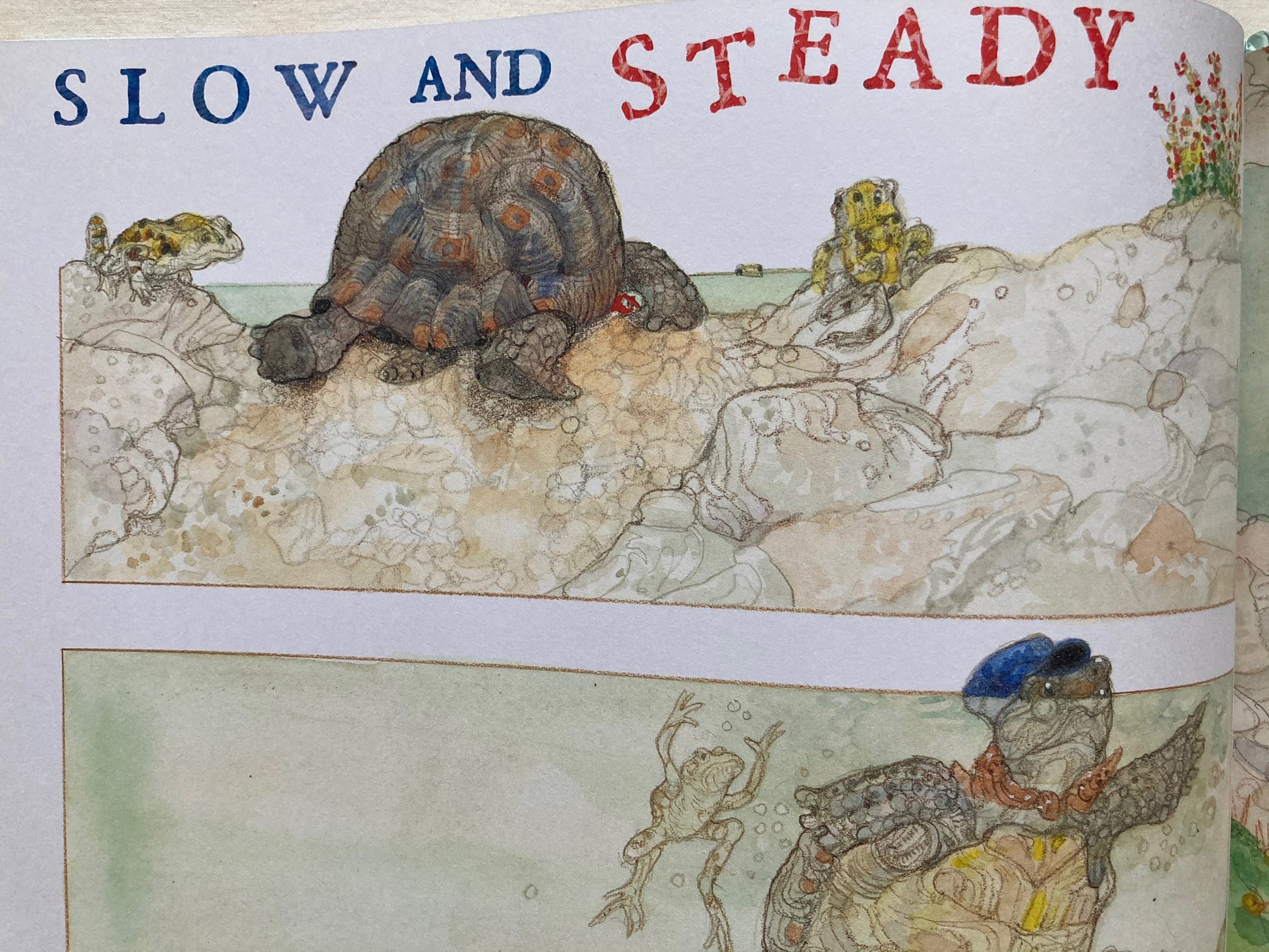 Une fable d'Ésope, LA TORTUE ET LE LIÈVRE magnifiquement illustrée dans le style traditionnel du médaillé Caldecott, Jerry Pinkney.