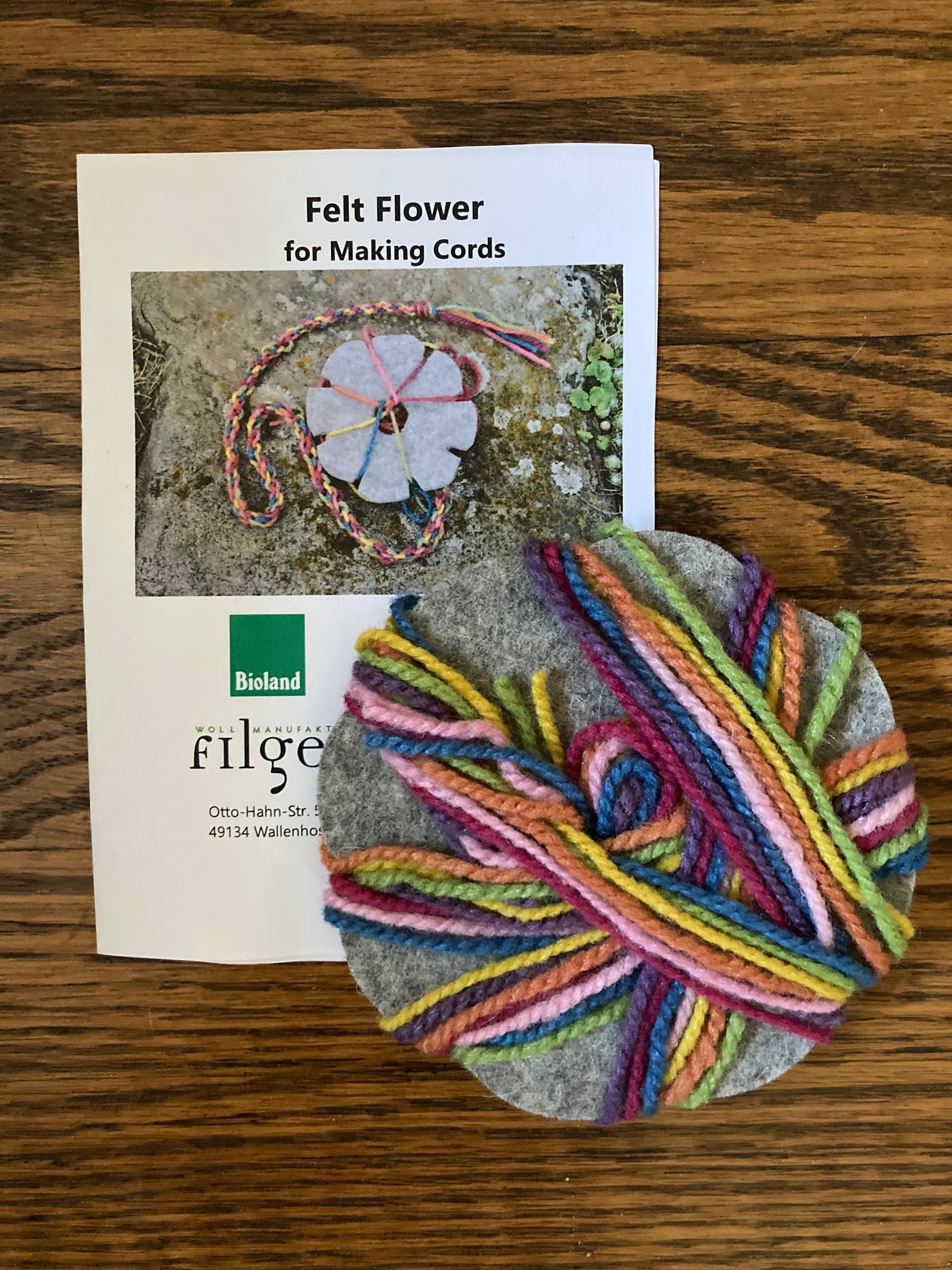 La fleur en feutrine est utilisée comme FLEUR À TRESSER pour réaliser des CORDES EN LAINE. Tout le nécessaire est inclus.