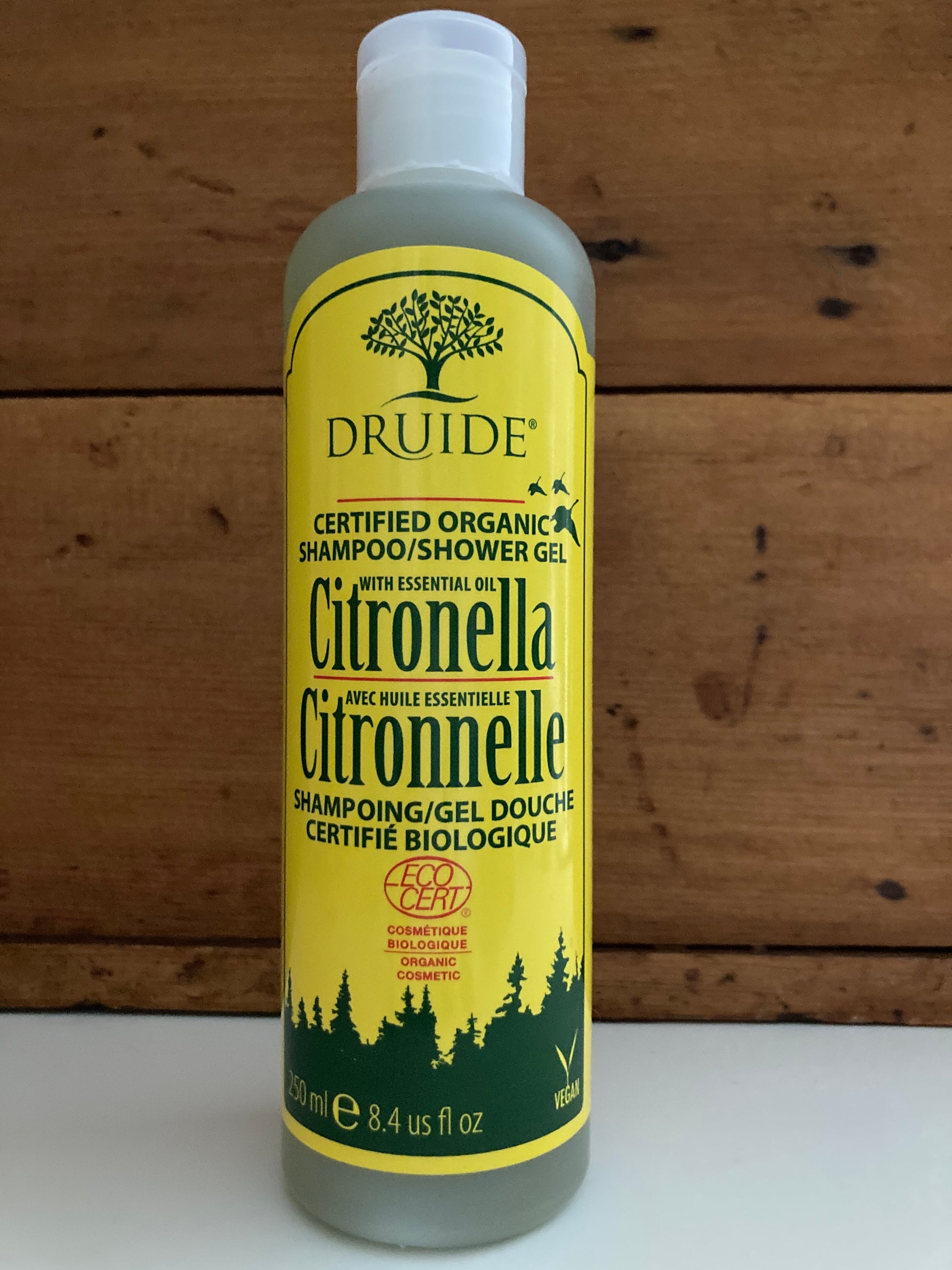 Le SHAMPOOING/GEL DOUCHE BIO CITRONELLA Druide est dérivé d'extraits végétaux d'huile de citronnelle et d'huile de romarin. 99% sont d'origine naturelle. 12% du total des ingrédients sont issus de l'agriculture biologique. Utilisez en toute confiance.