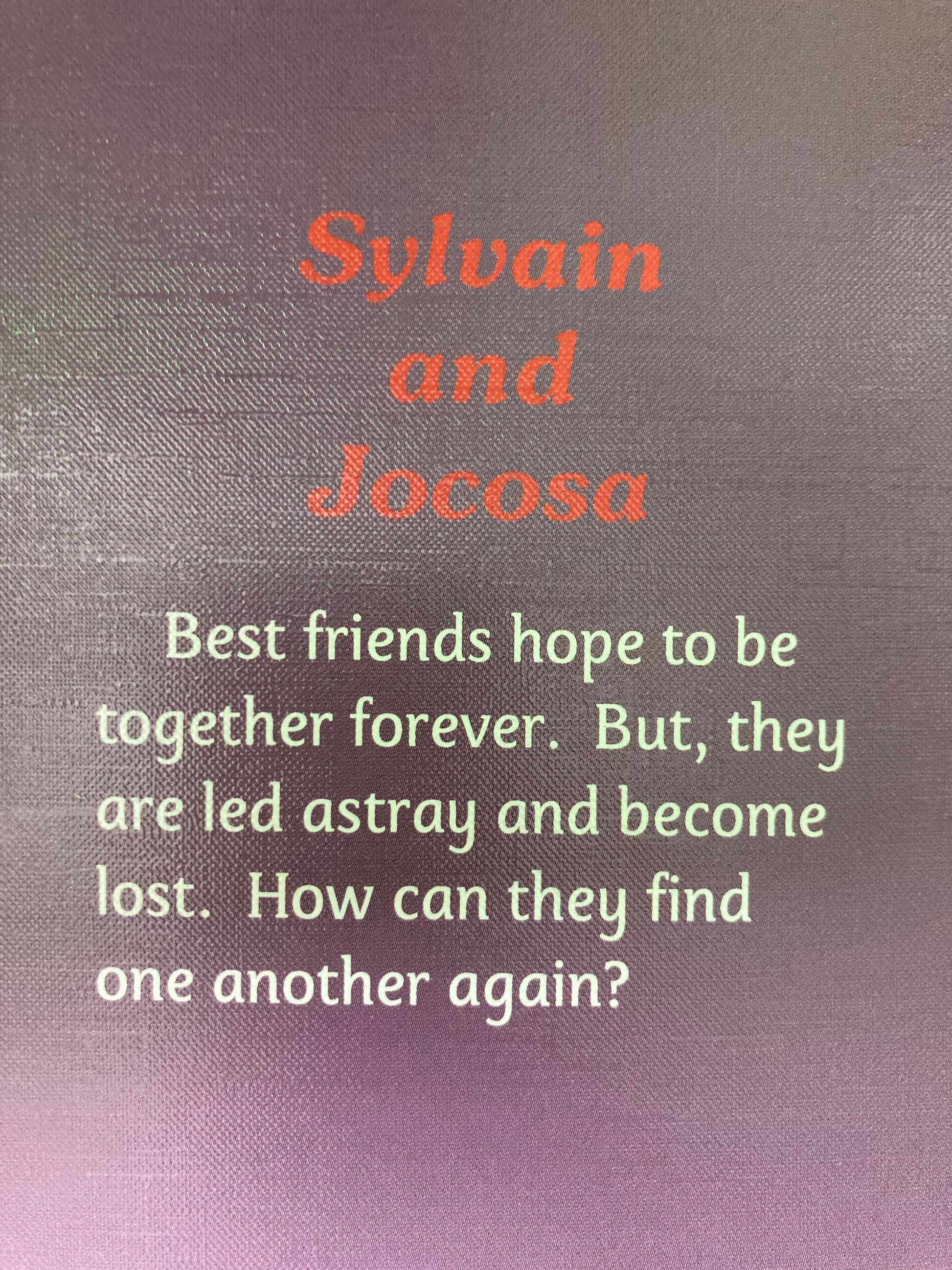 Il était une fois deux enfants. SYLVAIN et JOCOSA sont les meilleurs amis du monde et espèrent être ensemble pour toujours. Mais ils s’égarent et se perdent. Comment peuvent-ils se retrouver ? 20pages.