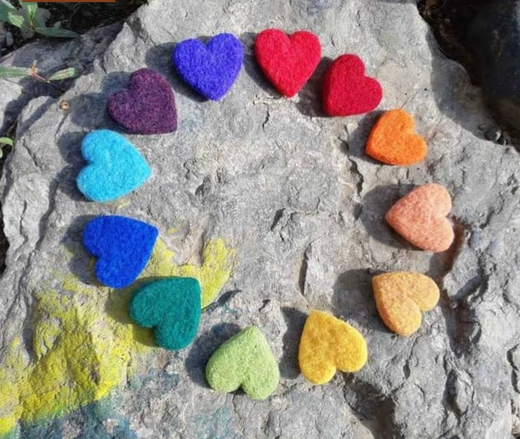 Jetez un oeil à elle, super douce COEURS EN LAINE FEUTRÉE !