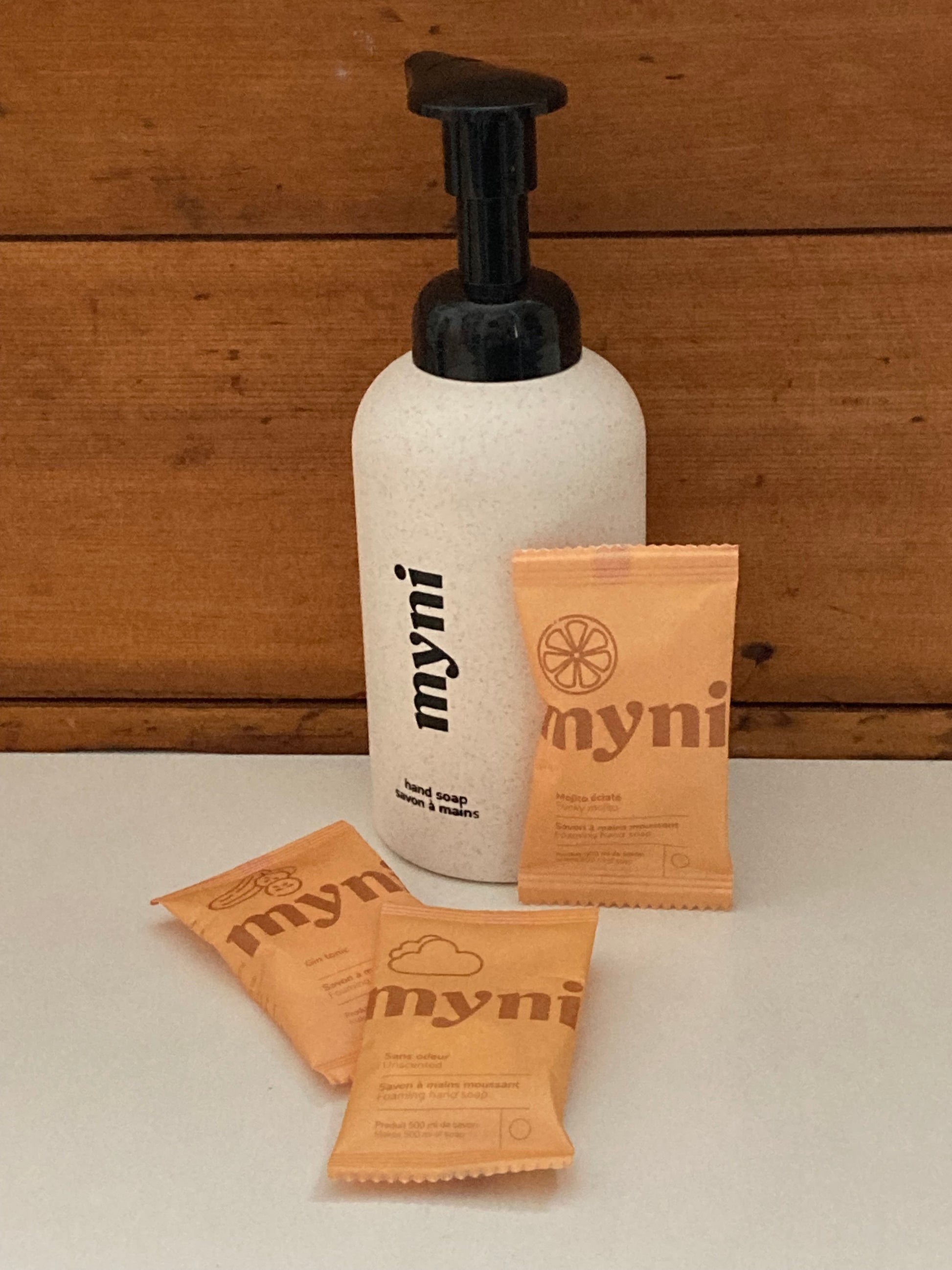 Découvrez le nouveau Myni FLACON POMPE de 500 ml pour SAVON MOUSSANT POUR LES MAINS à base de PAILLE DE BLÉ ! La première collection de flacons de savon pour les mains moussants naturels à base de paille de blé. Durabilité sans compromettre la biodégradabilité en fin de vie.