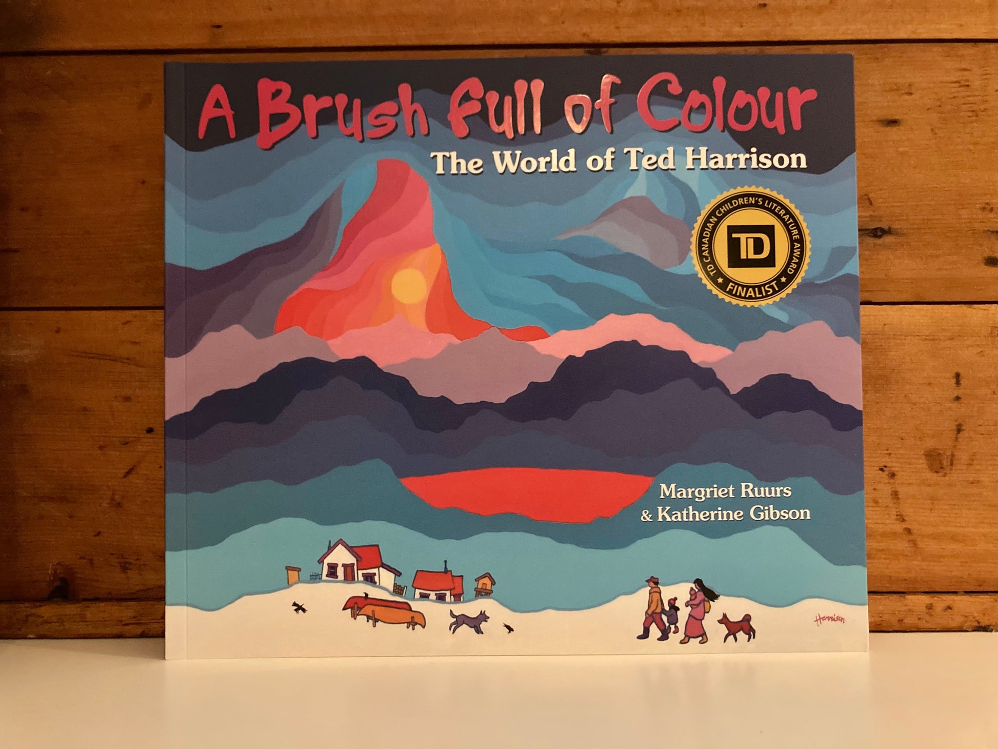 Écrit par les auteurs et amateurs d'art canadiens Margaret Ruurs et Katherine Gibson, A BRUSH FULL OF COLOR fera découvrir aux enfants, et à certains adultes aussi, le monde du peintre paysagiste canadien emblématique, Ted Harrison. M. Harrison a collaboré au livre. Il vit maintenant sur l'île de Vancouver, après avoir vécu et peint pendant de nombreuses années dans le Grand Nord canadien et dans les territoires du Yukon. Plusieurs de ses peintures bien connues représentent ce temps passé parmi les communautés des Premières Nations du Nord du Canada. Les peintures de Ted Harrison reflètent la joie, l'amour et la couleur qu'il a vécu !