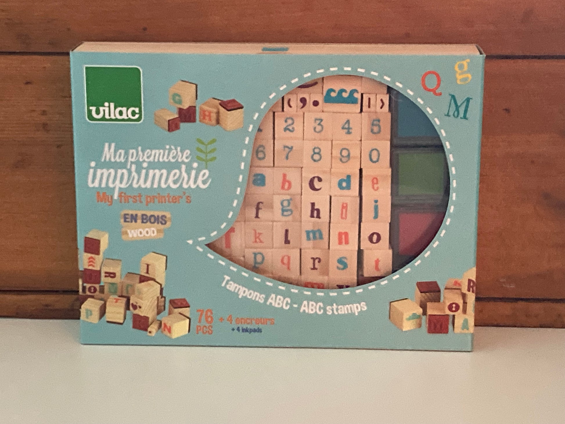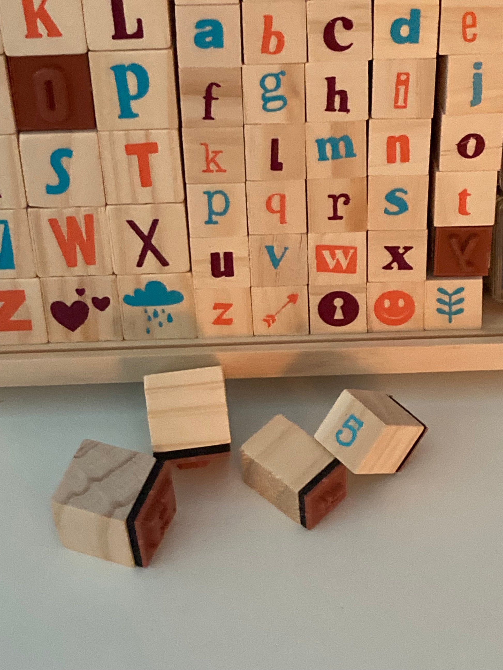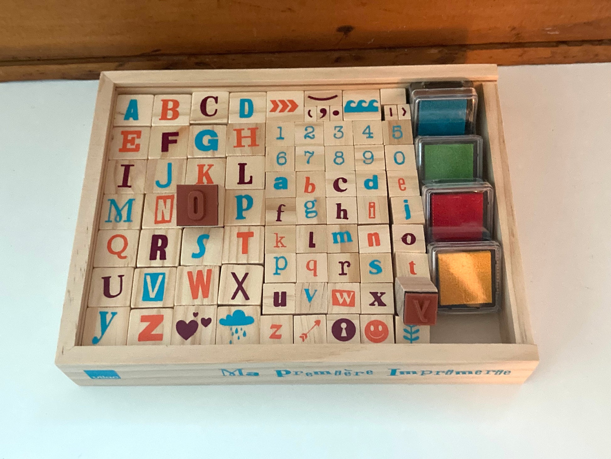 JEU DE TAMPONS LETTRES ET CHIFFRES d'apprentissage éducatif, en bois - 76 tampons !
