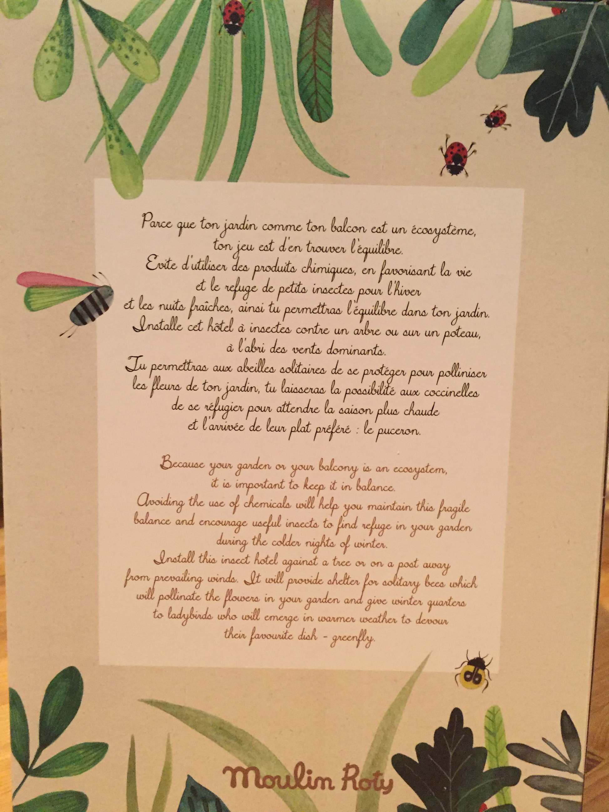 Un hôtel à insectes en bois de Moulin Roty Educational Toys. Offrez aux insectes une belle maison confortable pour les mois d’hiver. Et permettez aux enfants d’observer de près.