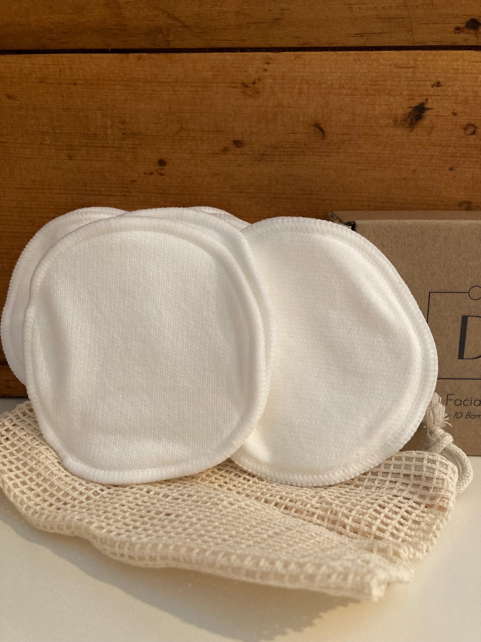 10 tampons faciaux en bambou super doux, avec un sac en filet de coton, pour le rangement, ou pour une utilisation en machine à laver, ou à la main. Rondes de 3 pouces. Dans une boîte en carton.