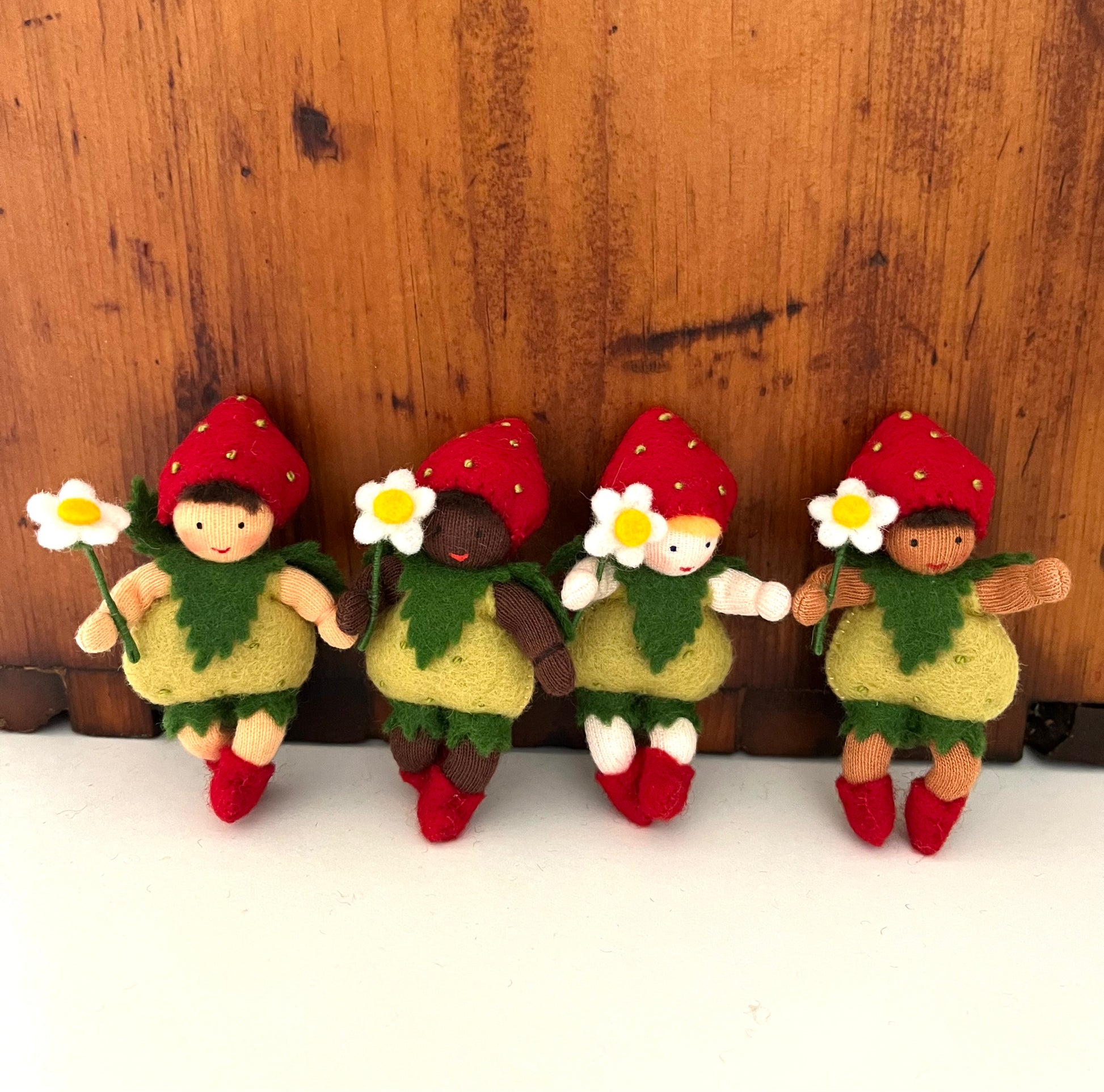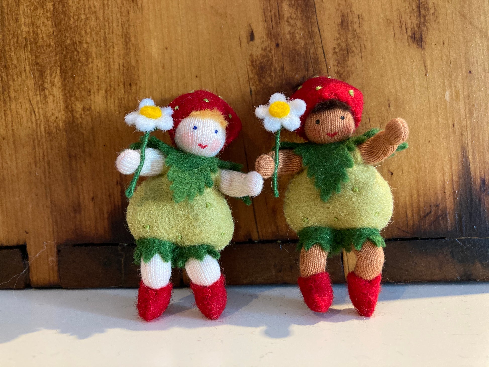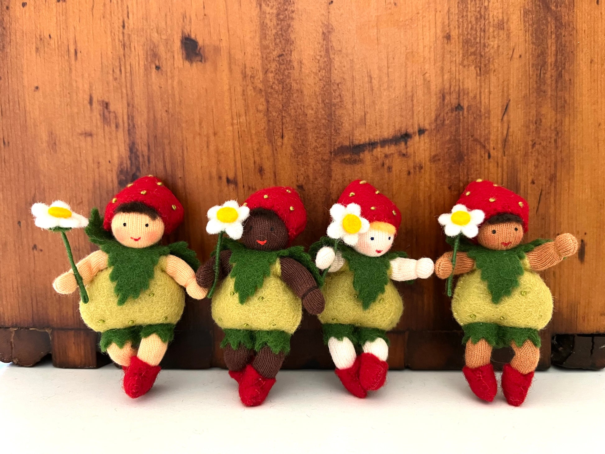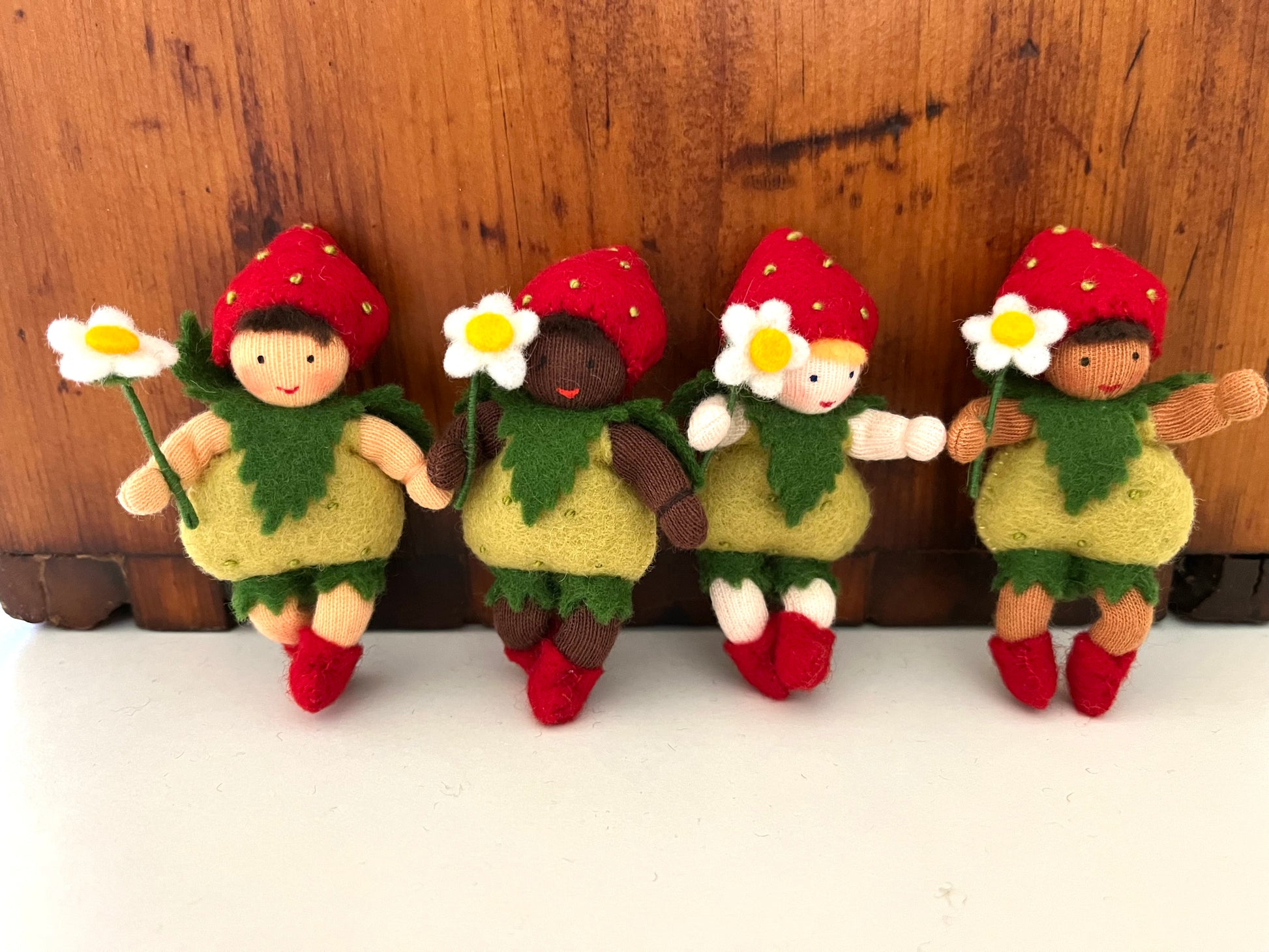 Sur la photo, les POUPÉES FÉES DE FLEURS DE FRAISE.