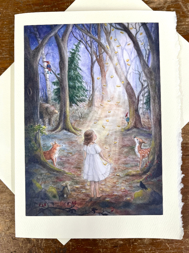 Beautiful original Art work on heavy grade, high quality card stock. Ivory with deckle edging, with matching envelope. Standard 5x7inch Greeting Card size. Blank inside.